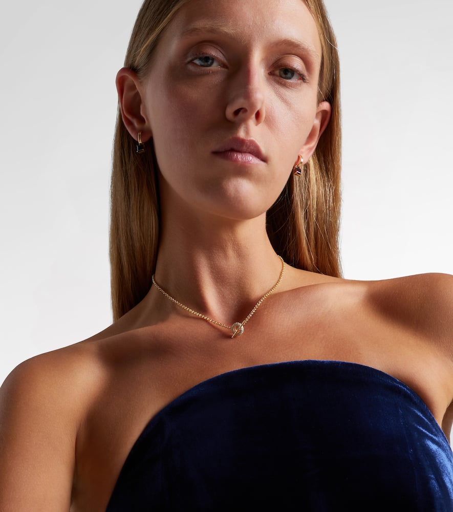 This 14kt gold chain necklace with diamonds by Stone and Strand is a modern and minimalist statement piece. Made in the USA from 14kt yellow gold, this necklace features a sleek chain adorned with 0.392 carats of shimmering diamonds. The design is a beautiful blend of a timeless aesthetic and modern luxury, perfect for adding a touch of refined sparkle to your daily look. It can be worn on its own for a subtle statement or layered with other pieces for a bolder, more personalized style.