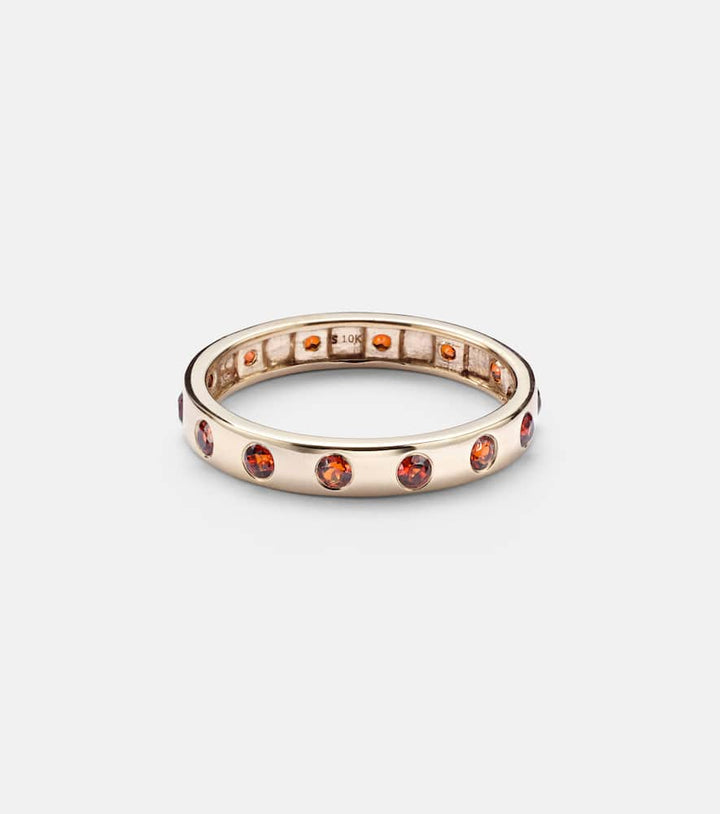 This 10kt gold ring with garnet by Stone and Strand is a classic and elegant piece. Made in the USA from 10kt yellow gold, this ring features 0.24 carats of stunning red garnets in a bezel setting. The design is a beautiful blend of a timeless aesthetic and modern luxury, perfect for adding a touch of refined charm to your daily look. It can be worn on its own for a subtle statement or stacked with other rings for a bolder, more personalized style.
