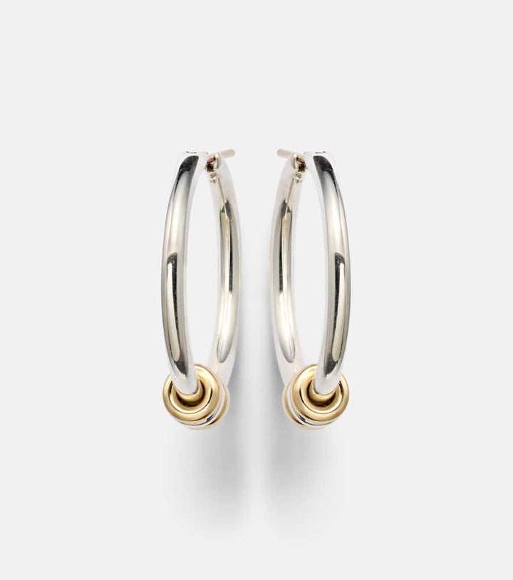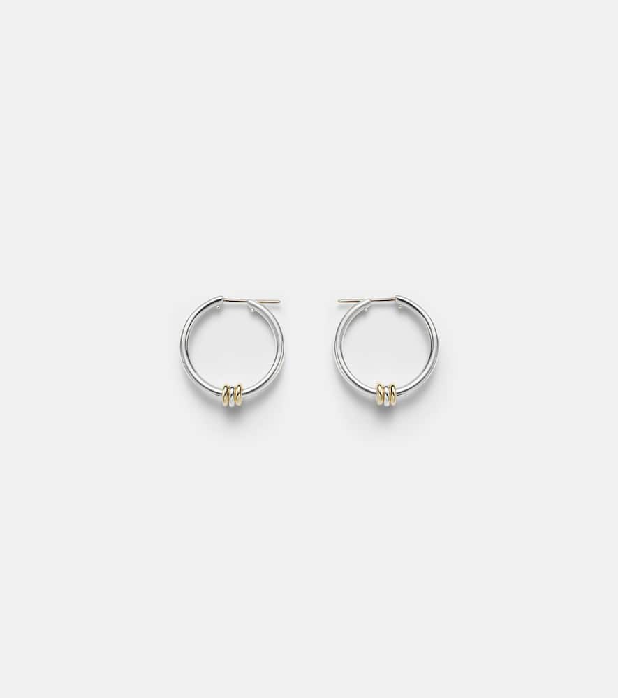 These Argo sterling silver and 18kt gold earrings by Spinelli Kilcollin are a modern and sculptural statement. Made in the USA from a beautiful mix of sterling silver and 18kt yellow gold, these earrings are a true work of art. The unique design is a celebration of a playful and modern aesthetic and is perfect for adding a touch of sophisticated drama to your look. They are a versatile piece that will elevate any ensemble.