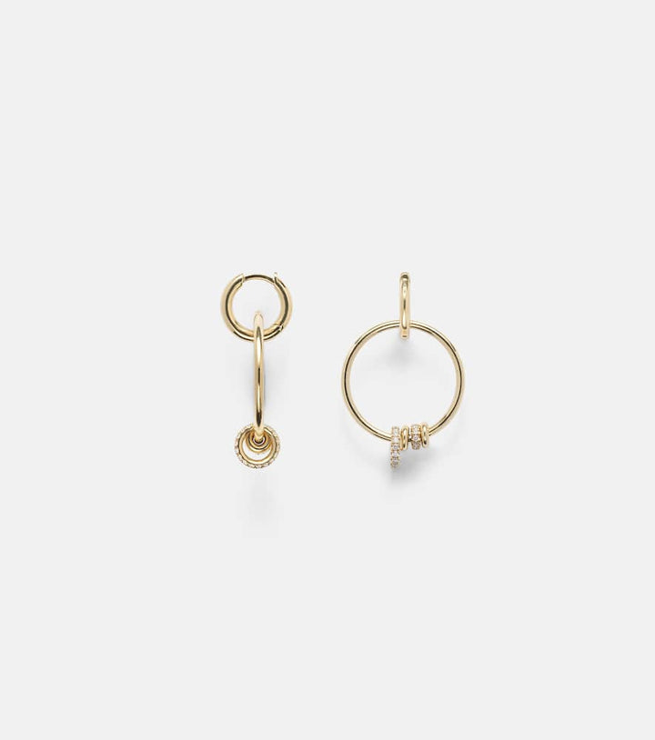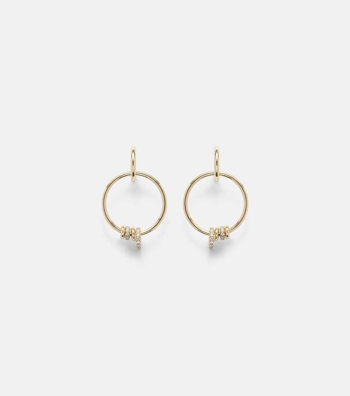 These Asha 18kt gold hoop earrings with diamonds by Spinelli Kilcollin are a modern and sculptural statement. Made in the USA from 18kt yellow gold, these hoop earrings are a true work of art. They are adorned with 0.4 carats of shimmering diamonds, adding a touch of brilliant sparkle. The unique design is a celebration of a playful and modern aesthetic and is perfect for adding a touch of sophisticated drama to your look.