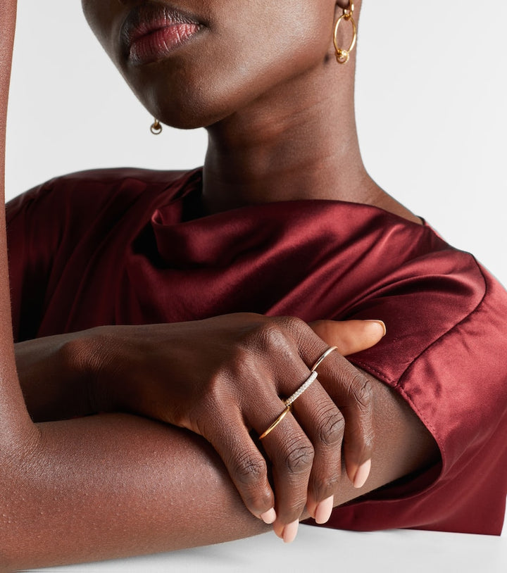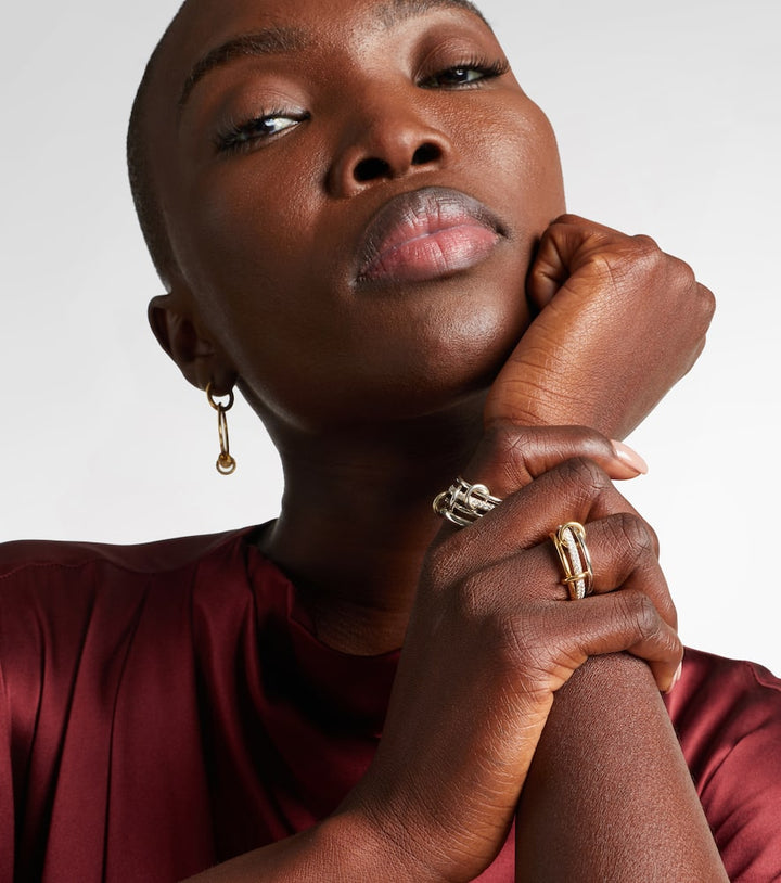 Spinelli Kilcollin is a luxury jewelry brand founded by designer Yves Spinelli and his wife, Dwyer Kilcollin, known for its innovative and contemporary designs. The brand’s signature style is the 'Galaxy Rings,' a series of interconnected, stackable bands that can be worn across multiple fingers or stacked on one. Crafted from a mix of gold, sterling silver, and diamonds, Spinelli Kilcollin's pieces blend minimalism with versatility. Their designs emphasize modern elegance and modularity, offering a bold yet refined aesthetic that appeals to those seeking unique, multifunctional jewelry.