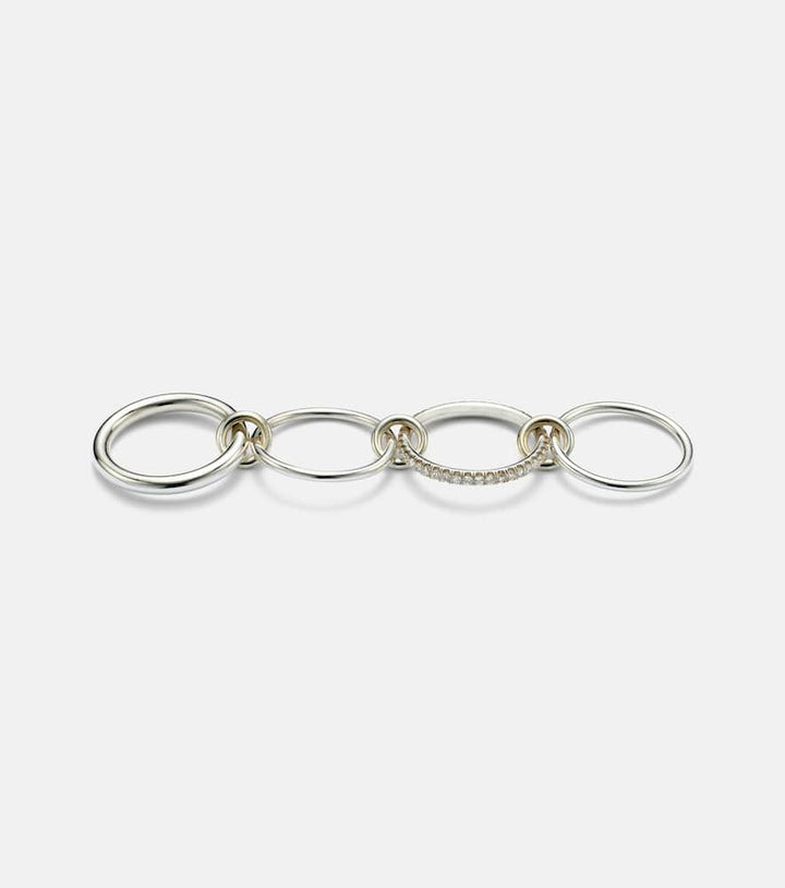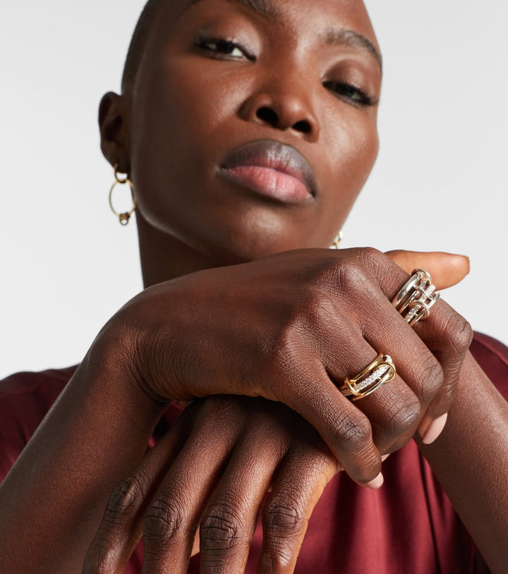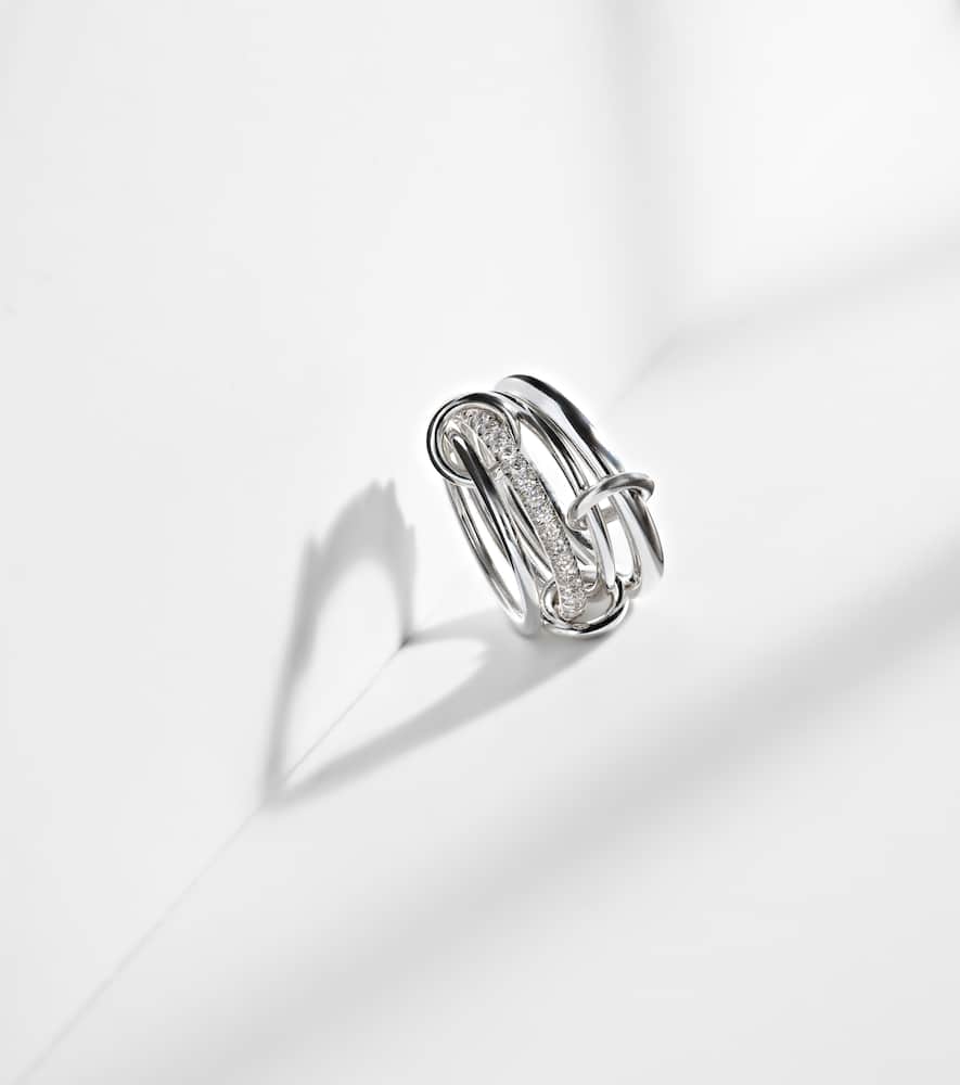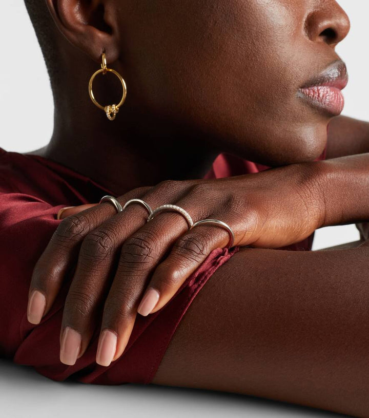 Spinelli Kilcollin is a luxury jewelry brand founded by designer Yves Spinelli and his wife, Dwyer Kilcollin, known for its innovative and contemporary designs. The brand’s signature style is the 'Galaxy Rings,' a series of interconnected, stackable bands that can be worn across multiple fingers or stacked on one. Crafted from a mix of gold, sterling silver, and diamonds, Spinelli Kilcollin's pieces blend minimalism with versatility. Their designs emphasize modern elegance and modularity, offering a bold yet refined aesthetic that appeals to those seeking unique, multifunctional jewelry.
