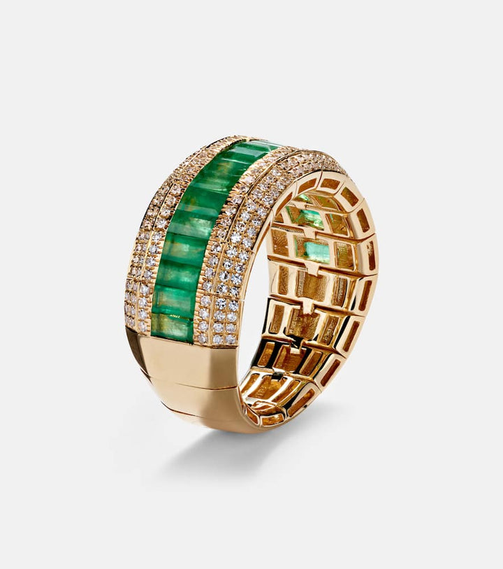 18kt gold ring with emeralds and diamonds