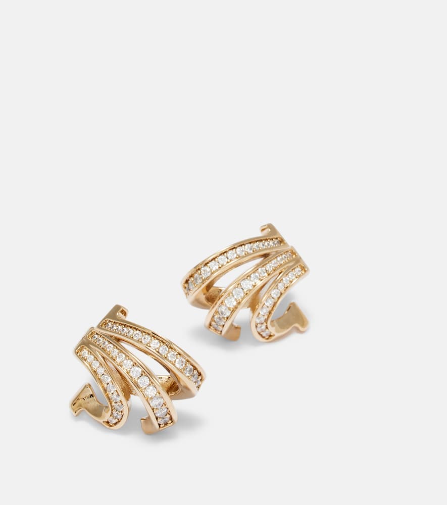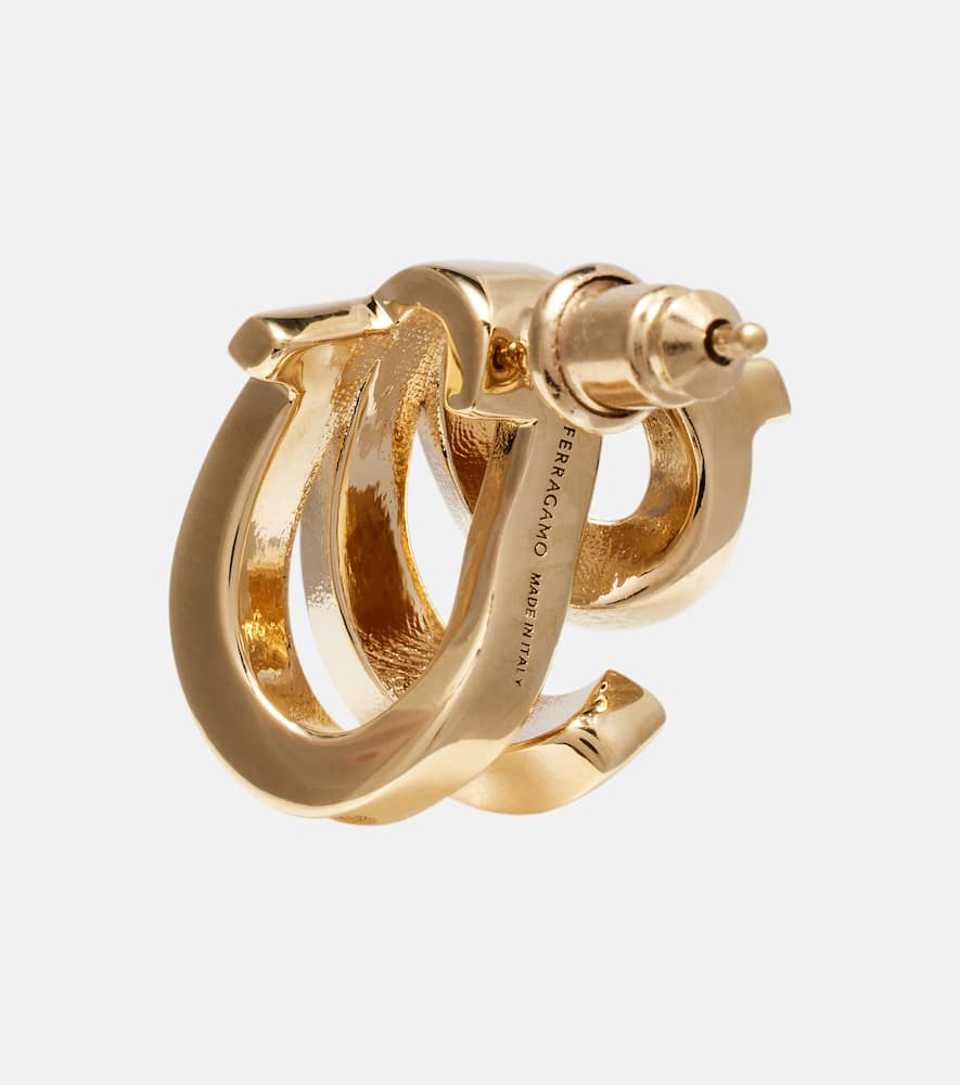 These Embellished gold-plated hoop earrings by Ferragamo are a classic and iconic new arrival. Made in Italy from gold-plated brass, these earrings feature the brand's signature Gancini emblem, a powerful symbol of style and heritage. They are beautifully adorned with shimmering crystals, adding a touch of brilliant sparkle. These earrings are a versatile staple that can be worn for both special occasions and for adding a touch of everyday luxury.