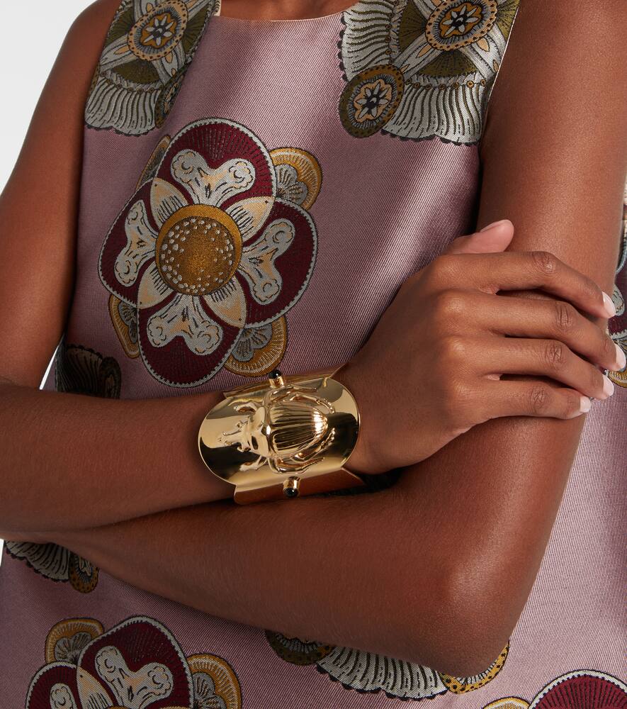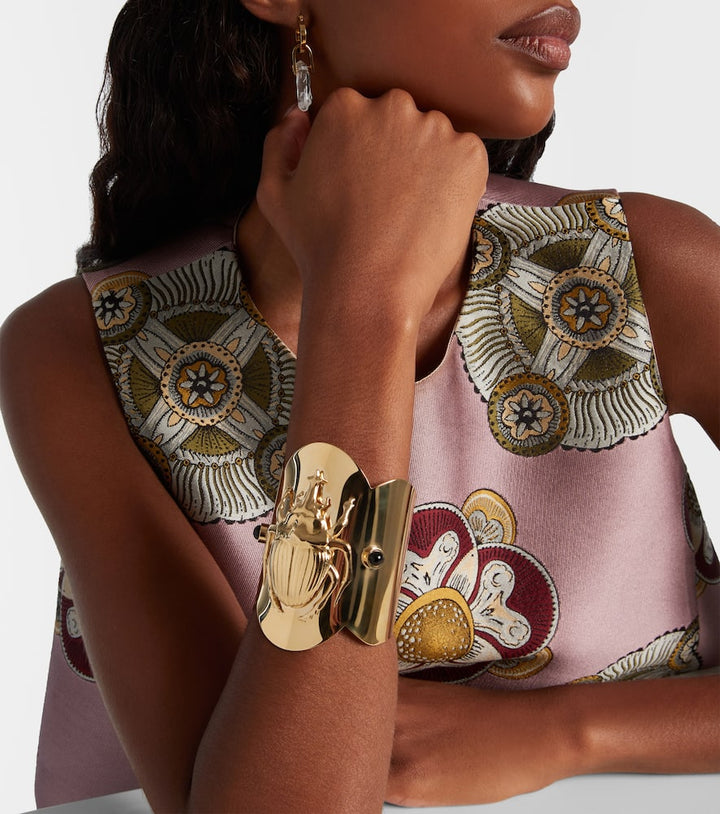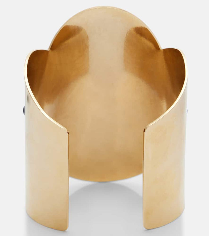 This Scarab gold-plated cuff bracelet by La DoubleJ is a bold and opulent new arrival. Made in Italy from 24kt gold-plated brass, this wide cuff bracelet features a unique, sculptural design that adds an artistic flair to any look. The striking gold-toned finish is a celebration of a playful and modern aesthetic and is perfect for adding a touch of avant-garde drama to any look. It's a true statement piece that will set you apart from the crowd.