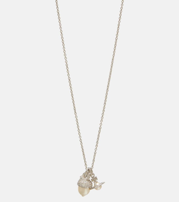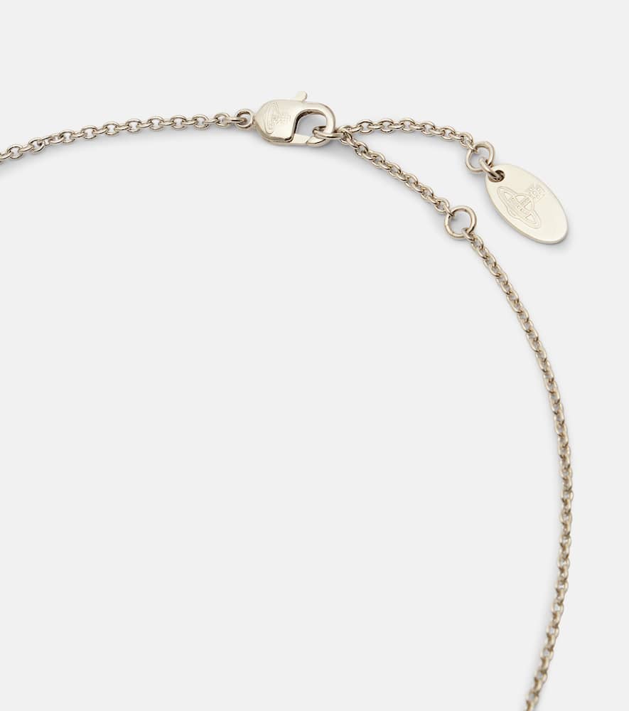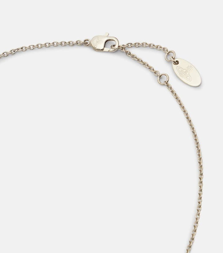 This Lucille embellished pendant necklace by Vivienne Westwood is a classic and elegant new arrival. Made in Thailand from brass, this silver-toned pendant necklace is a beautiful blend of a timeless aesthetic and modern luxury. It features a dazzling Orb emblem adorned with crystals and a faux pearl. The design is a celebration of a sophisticated and graceful style and is perfect for adding a touch of elegant sparkle to your look.