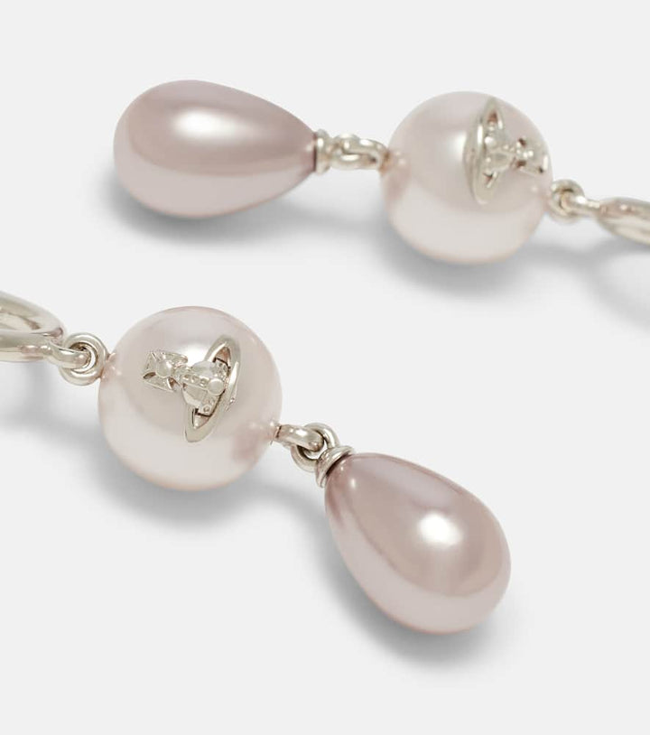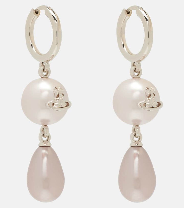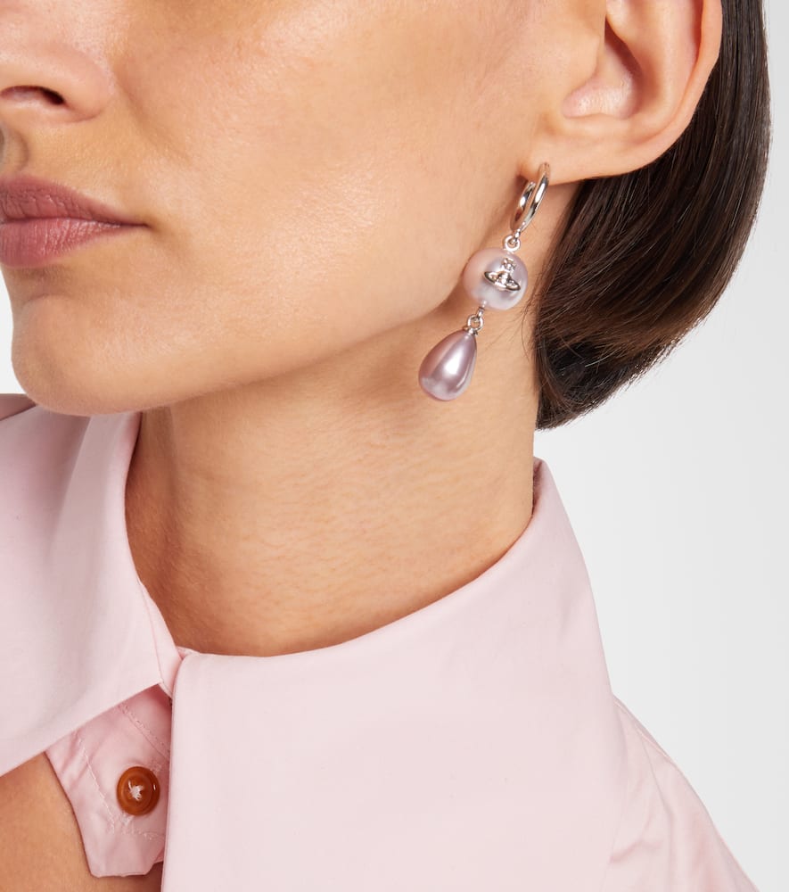 These Martha Orb faux pearl drop earrings by Vivienne Westwood are a classic and elegant statement. Made in Thailand from brass, these earrings feature a beautiful blend of a timeless aesthetic and modern luxury. They feature a single faux pearl and the signature Orb emblem, a powerful symbol of style and heritage. The design is a celebration of a sophisticated and graceful style and is perfect for adding a touch of elegant sparkle to your look.
