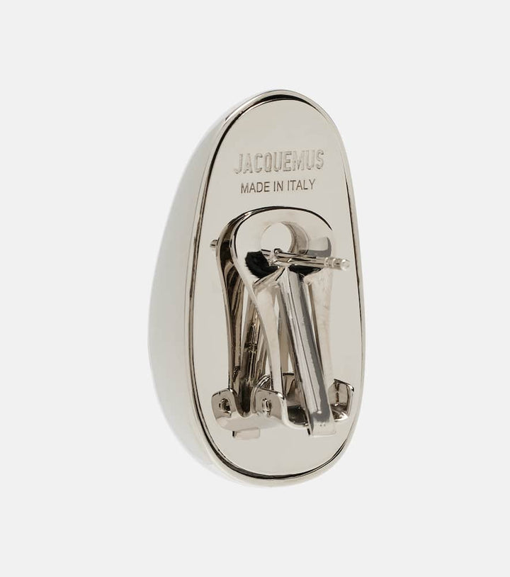 These Curvo earrings by Jacquemus are a bold and sculptural statement. Made in Italy from brass, these silver-toned earrings feature a unique, curved design that adds an artistic flair to any look. The striking shape is a celebration of a playful and modern aesthetic and is perfect for adding a touch of sophisticated drama to your look. They are a versatile piece that will elevate any ensemble.