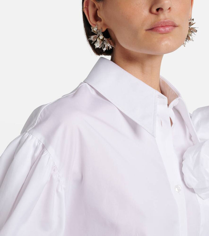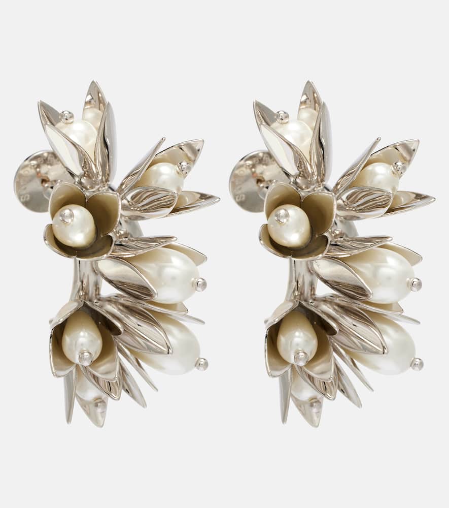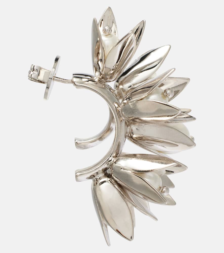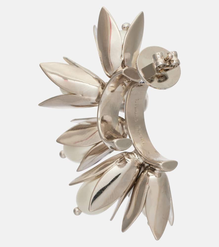 These Floral faux pearls hoop earrings by Simone Rocha are a romantic and whimsical new arrival. Made in Italy from brass and resin, these hoop earrings feature a delicate floral design adorned with elegant faux pearls. The design is a celebration of a sophisticated and graceful style and is perfect for adding a touch of elegant charm to your look. These are a true work of art that will be cherished for years to come.