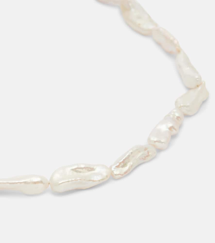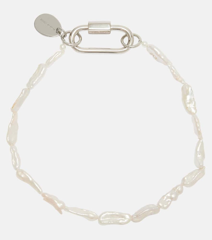 This Pearl necklace by Simone Rocha is a romantic and whimsical statement. Made in Portugal from brass and freshwater pearls, this necklace is a beautiful blend of a timeless aesthetic and modern luxury. The design is a celebration of a sophisticated and graceful style and is perfect for adding a touch of elegant charm to your look. This piece is a true work of art that will be cherished for years to come.