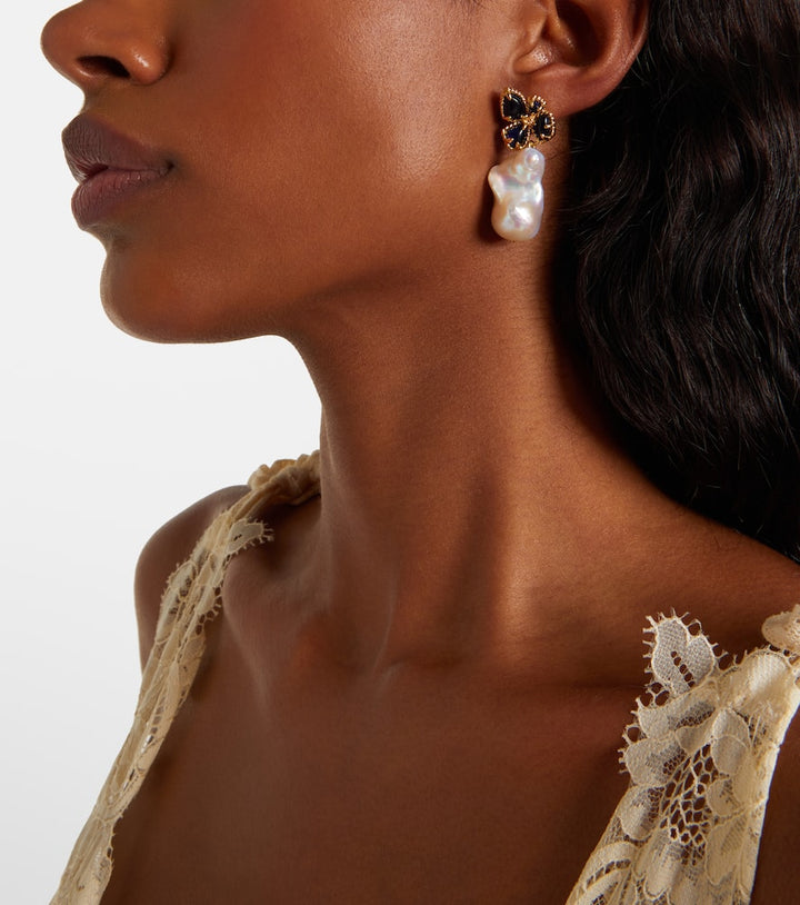 These Bloom Baroque pearl drop earrings by Zimmermann are a romantic and whimsical new arrival. Made in China from a beautiful mix of baroque pearls, glass, and brass, these earrings are a true work of art. The design is a celebration of a sophisticated and graceful style and is perfect for adding a touch of elegant charm to your look. They will be a cherished piece for years to come.