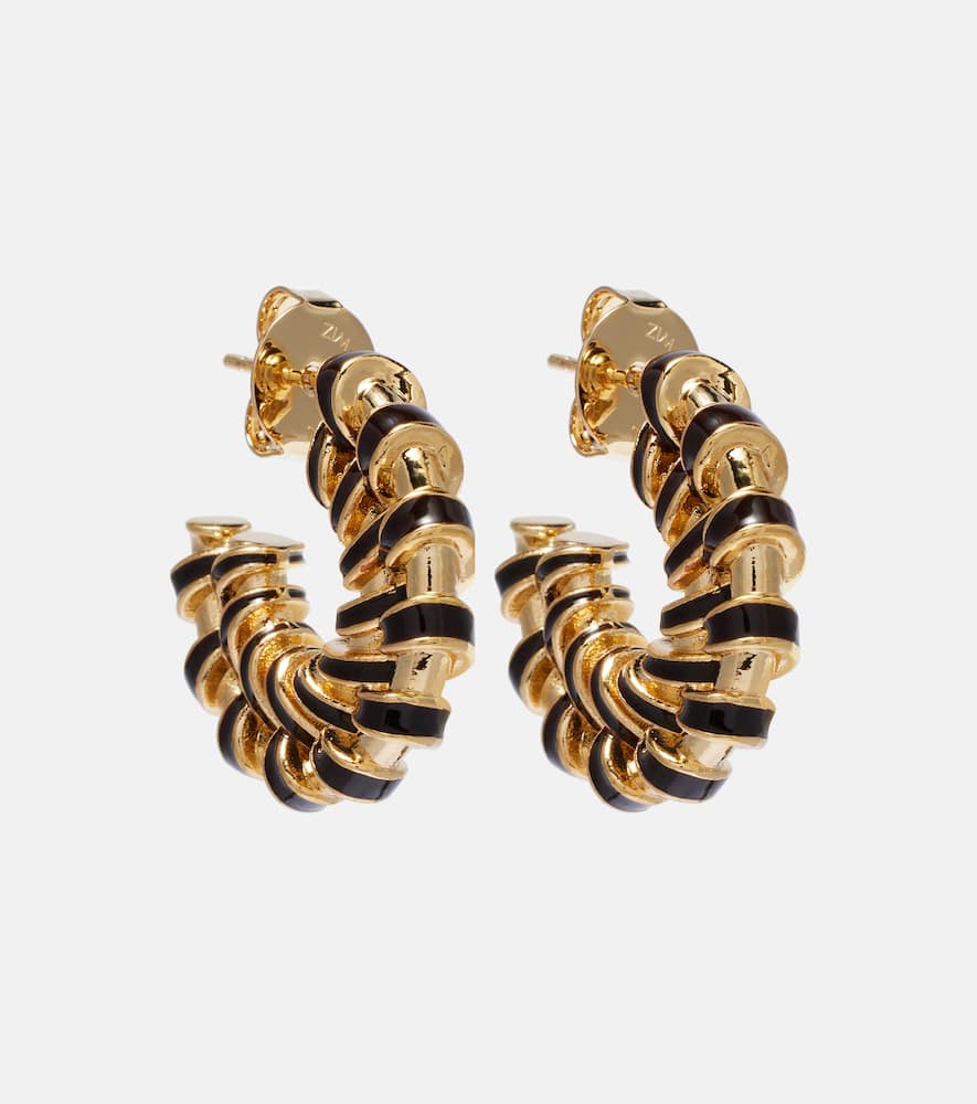 These Loop gold-plated hoop earrings by Zimmermann are a classic and timeless new arrival. Made in China from a mix of brass, enamel, and stainless steel, these gold-toned hoop earrings are a beautiful blend of a timeless aesthetic and modern luxury. The sleek design is perfect for adding a touch of refined luxury to your daily look. They are a versatile staple that you will love for years to come.