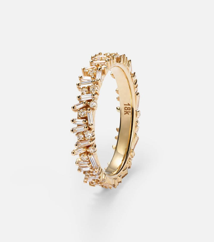 Style Notes: These Icon Midi 18kt gold tech ring jackets with diamonds by Suzanne Kalan are a stunning and versatile statement piece. Made in the USA from 18kt yellow gold, these ring jackets are a celebration of brilliant craftsmanship and unique design. They are adorned with a total of 2.2 carats of baguette and round-cut diamonds that shimmer with every movement, creating a truly opulent effect. These jackets are perfect for transforming a simple solitaire into a modern masterpiece.