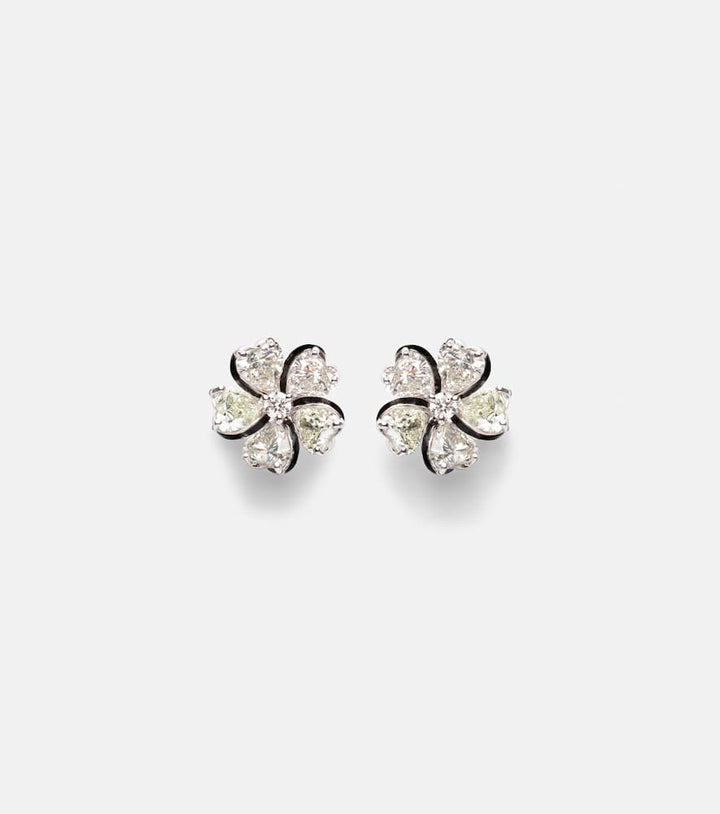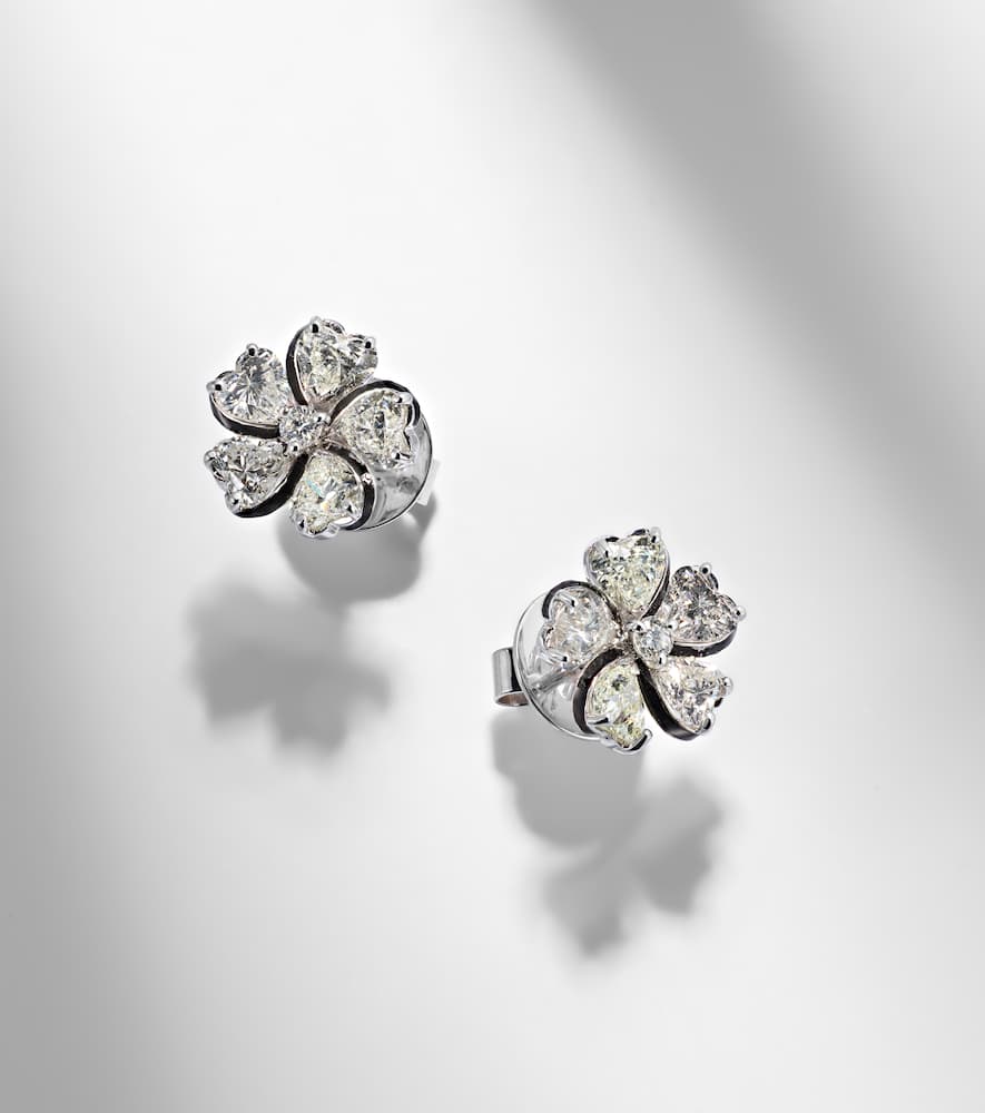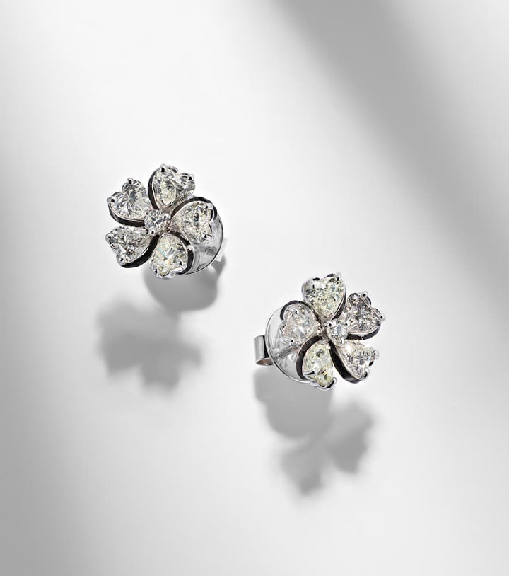 These Love Petals 18kt white gold earrings with diamonds by Kamyen are a bold and glamorous new arrival. Made in India, these earrings are a beautiful blend of artistry and luxury. The design features a stunning array of heart-shaped and round-cut diamonds, totaling 2.6 carats, that shimmer with every movement. These earrings are a symbol of a confident and feminine style and are perfect for adding a touch of high-end sparkle to your look.