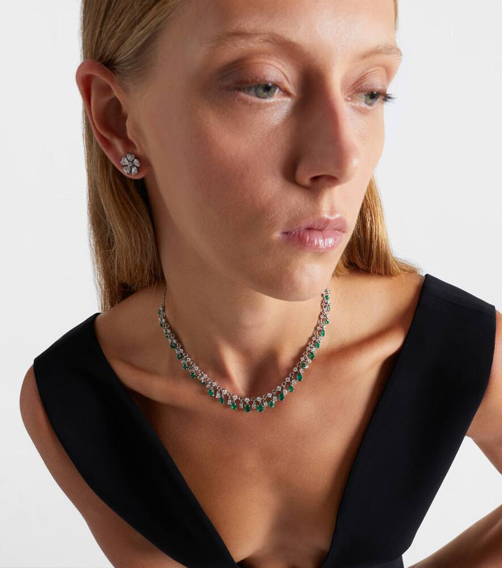 18kt white gold necklace with emeralds and diamonds