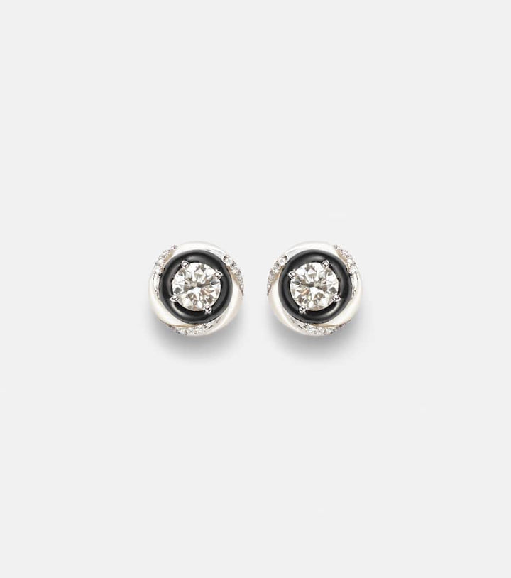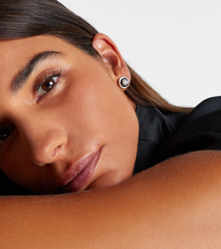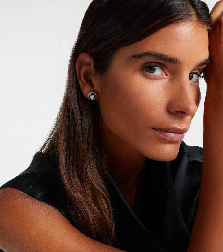 These Calisto 18kt white gold earrings with diamonds by Kamyen are a magnificent and opulent new arrival. Made in India from 18kt white gold, these earrings are a breathtaking masterpiece, combining a stunning arrangement of colored stones with a brilliant display of diamonds. The design is a celebration of a bold and confident style, making them perfect for adding a touch of high-end drama to any look. They are a true work of art that will be cherished for years to come.