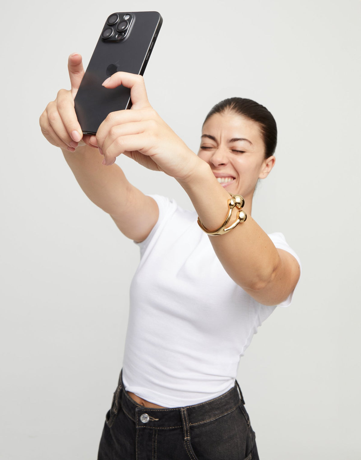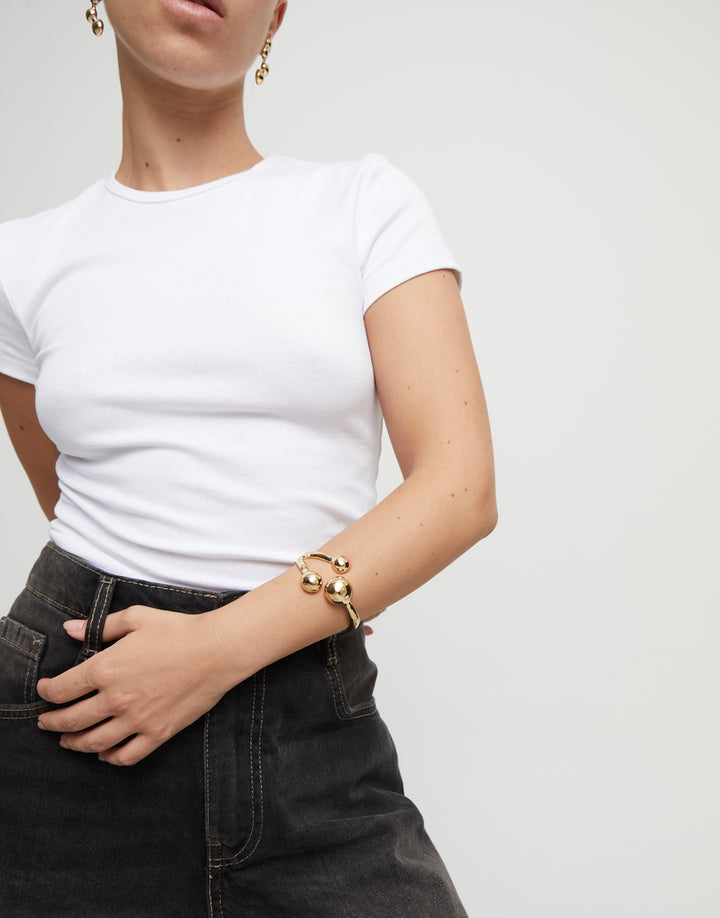 This Cuff Bracelet with Three Beads by UNOde50 embodies fearless elegance and adventurous spirit. The rigid design features three 18K gold-plated beads, creating a playful, sculptural aesthetic that reflects the ethos of Ser Intrépida. Each bead catches the light, emphasizing movement and individuality. Designed for those who dare to mix metals and embrace bold styling, this bracelet is perfect for stacking or as a standalone statement piece. Its geometric simplicity and artisanal craftsmanship make it a versatile addition to any contemporary jewelry collection.