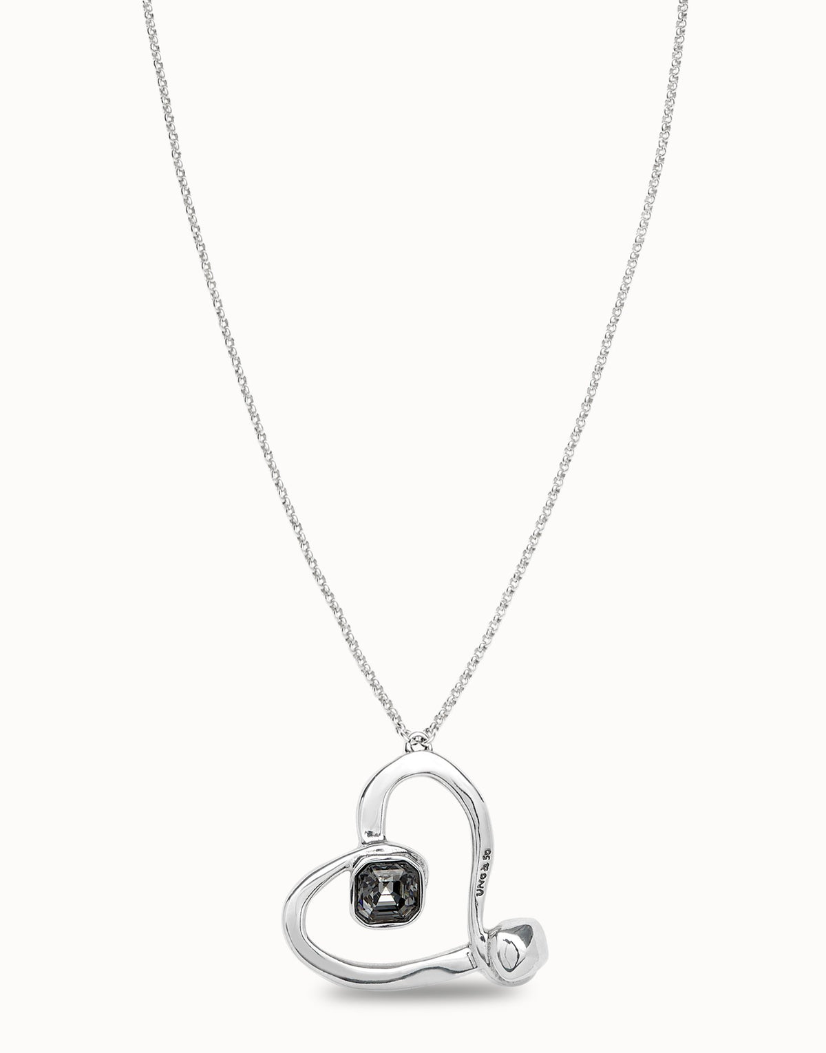 This Long Chain Pendant Necklace with a Large Heart by UNOde50 is a sterling silver-plated statement piece showcasing a prominent black faceted crystal heart. Inspired by the Ser Expresiva collection, it symbolizes transparency, emotional honesty, and bold self-expression. Handmade in Spain, the long necklace allows for dramatic styling, either layered or worn solo, while its reflective facets and geometric charm create a striking focal point. It embodies versatility, passion, and playful personality for the wearer who wants to convey confidence and contemporary artistry.