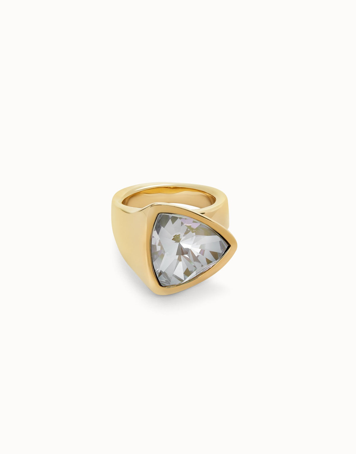 Triangular 18K gold-plated ring with multicolored faceted crystal. Diameter 18 mm. Handmade in Spain.