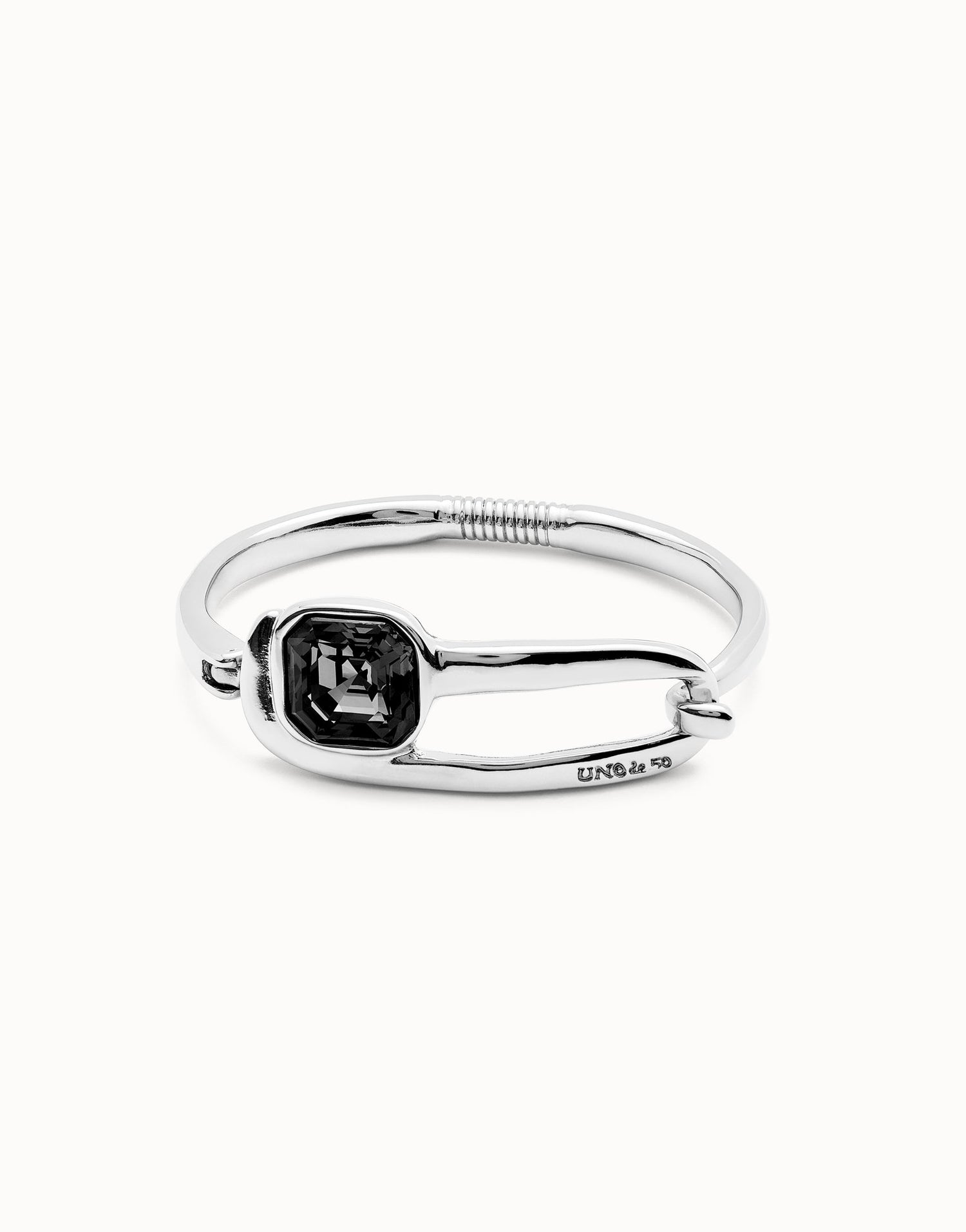 This Bangle Bracelet with a Black Crystal by UNOde50 is a bold expression of transparency and expressive style. From the Ser Expresiva collection, its rigid sterling silver-plated structure features a central black faceted crystal that radiates intensity and elegance. Handmade in Spain, the bracelet embodies energy, authenticity, and fearless self-expression, allowing the wearer to convey emotions confidently. Ideal for stacking or as a statement piece, it celebrates individuality, passion, and creativity. A versatile accessory, it captures the essence of dynamic design while reflecting the artistry and meticulous craftsmanship of contemporary jewelry.