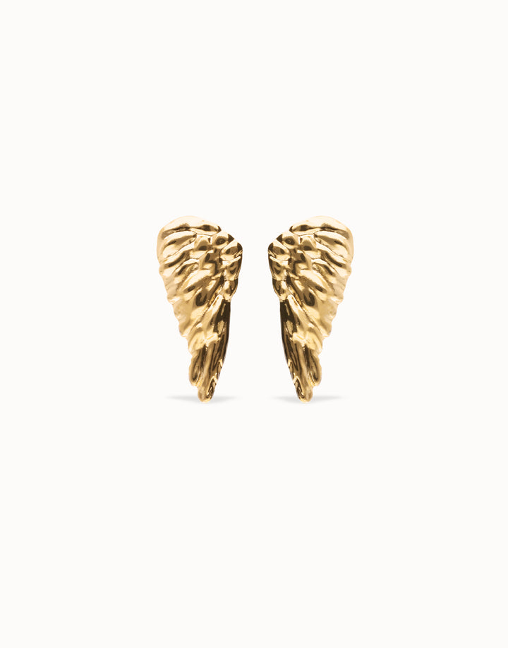 Gold-finish wing earrings with wrap-around design. Minimum length 3.5 cm. Weight 10.9 g. Handmade in Spain.