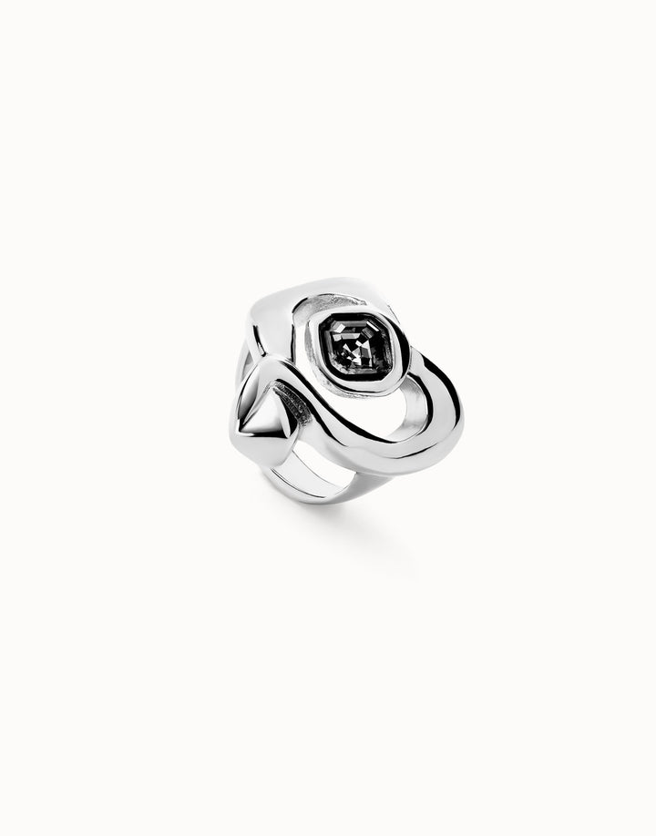 This Ring with Heart and Central Black Crystal by UNOde50 radiates bold elegance and expressive energy. From the Ser Expresiva collection, its sterling silver-plated form features a large heart accented with a central black faceted crystal, embodying openness, passion, and contemporary artistry. Handmade in Spain, the ring is perfect for statement styling or layered wear. It transforms the hand into a showcase of craftsmanship, geometric sophistication, and fearless individuality, reflecting the brand’s philosophy of transparency, authenticity, and bold modern jewelry design.