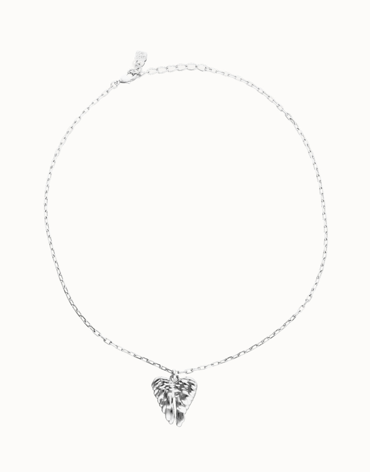 Short sterling silver necklace with wing pendant. Maximum length 45.5 cm, minimum length 41 cm. Weight 9.9 g. Handmade in Spain.