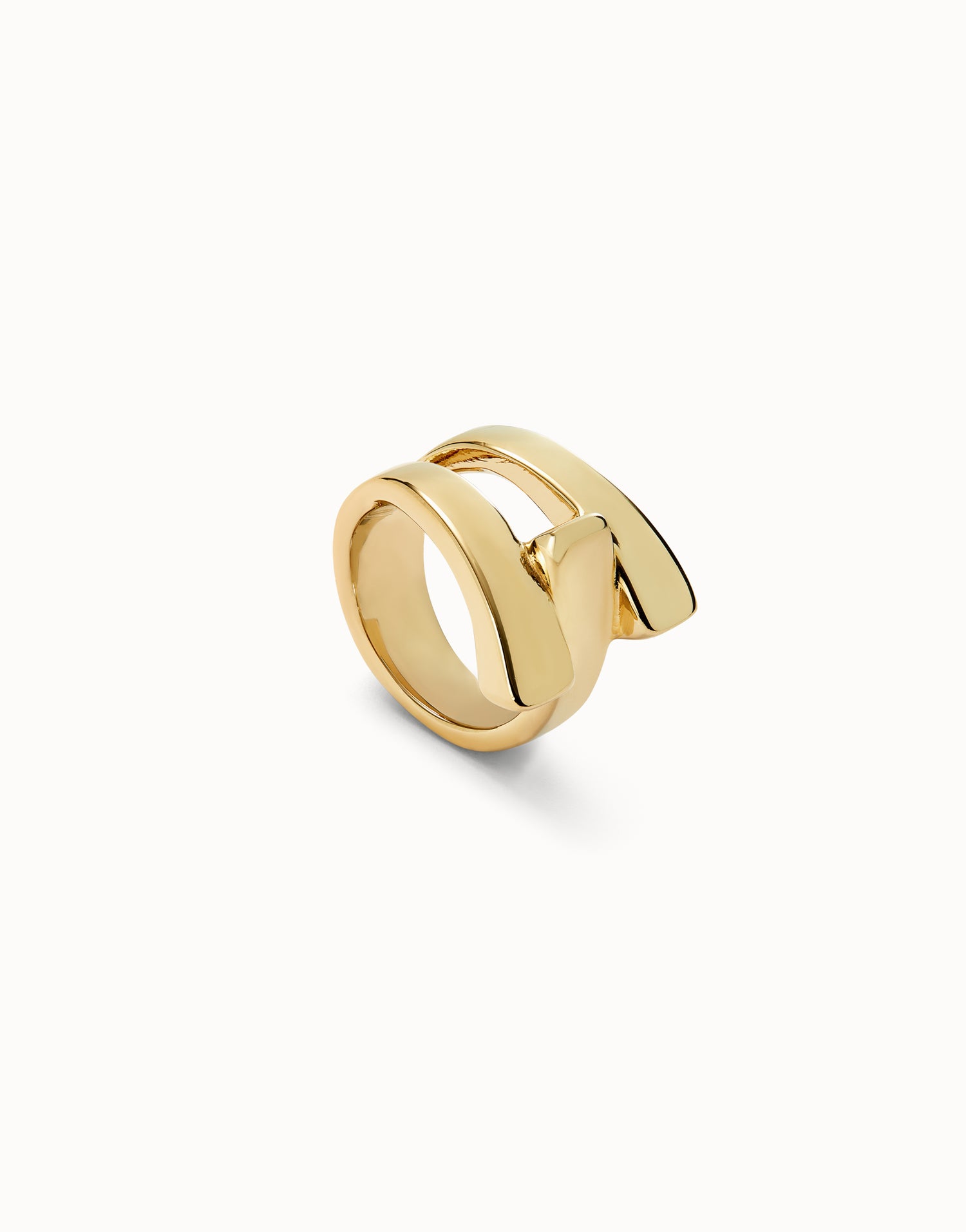 This Cross Link Ring by UNOde50 combines geometric precision with timeless luxury. The interlocking structure, polished in 18k gold plating, embodies originality and fearless self-expression. Rooted in the Ser Original collection, it inspires creativity and confidence while allowing wearers to mix and match with other pieces. Perfect for modern, statement-making style, this ring represents the wearer’s individuality with elegance.
