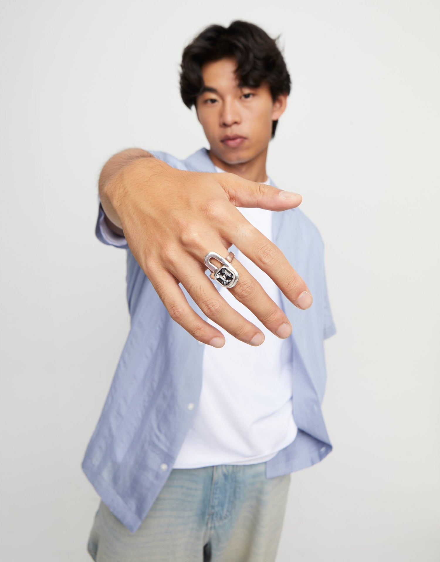 This Ring with Black Crystal by UNOde50 embodies fearless self-expression and bold elegance. The faceted black crystal center serves as a powerful focal point, symbolizing honesty, intensity, and passion. From the Ser Expresiva collection, it encourages wearers to openly showcase their emotions and ideas with style. Perfect for stacking or wearing solo, the geometric and luminous design brings energy and intrigue to every gesture, making it a compelling statement piece.