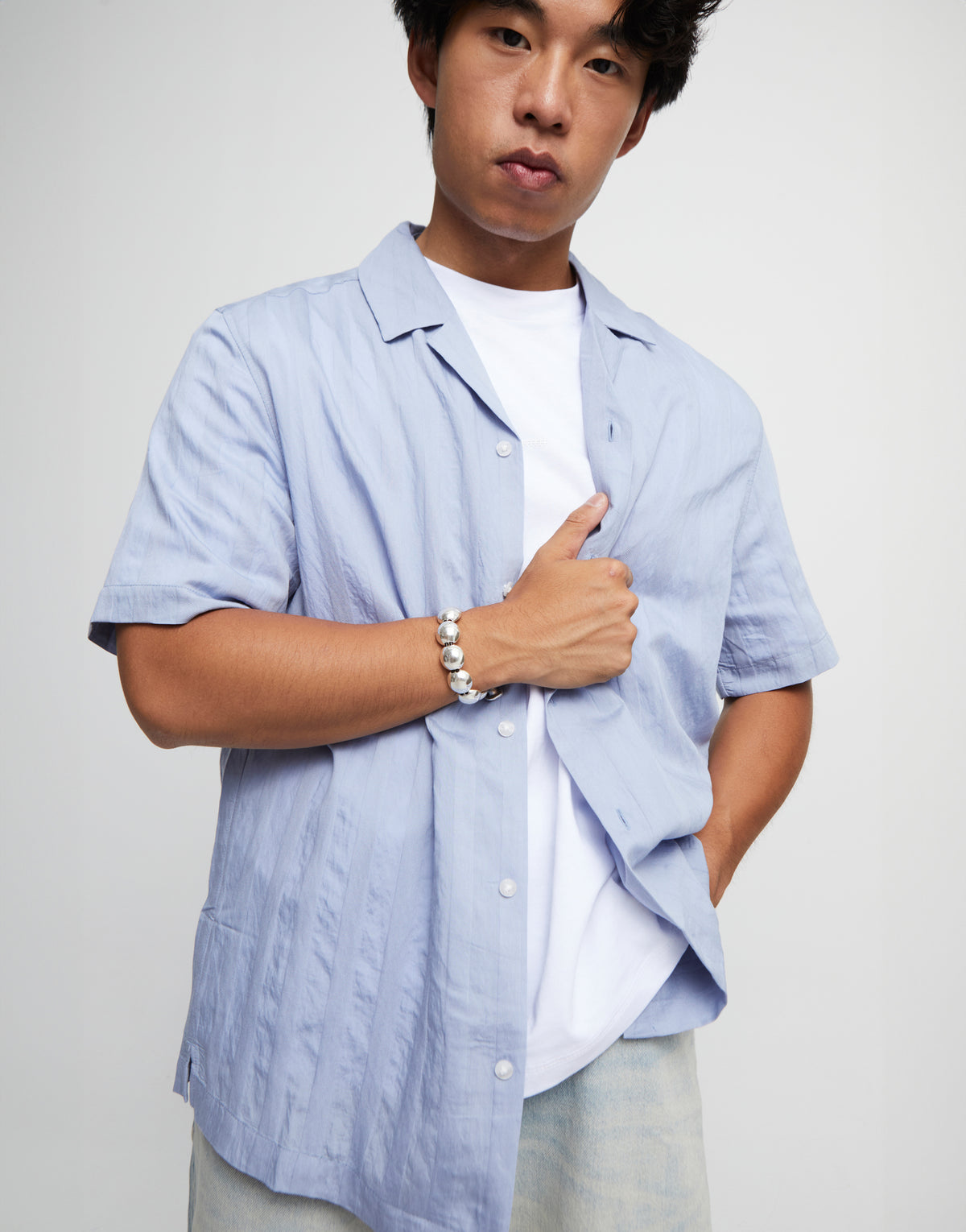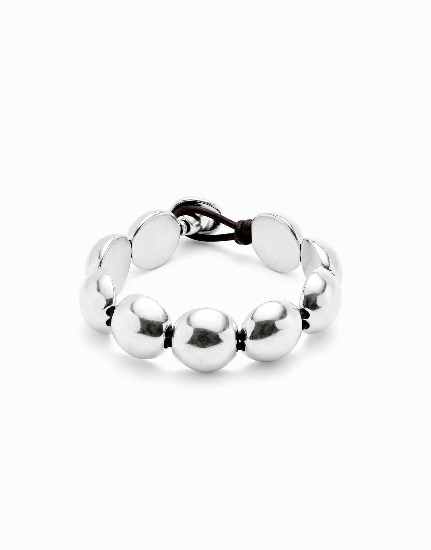 Leather bracelet with large round beads