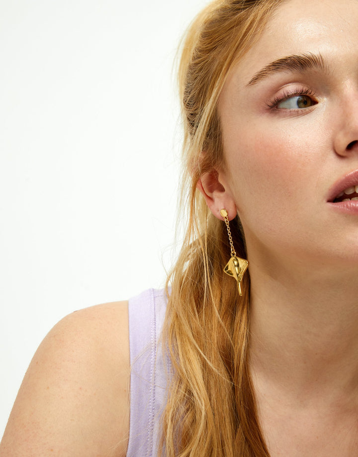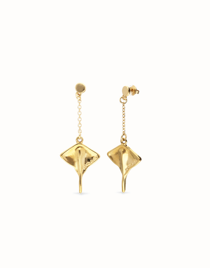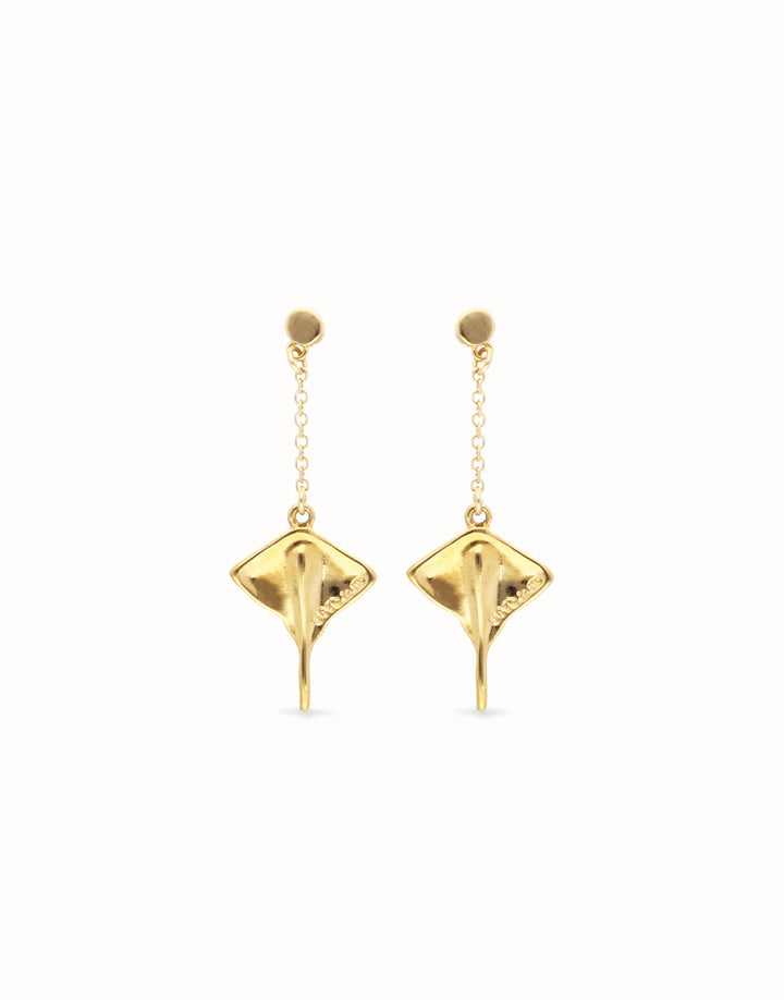 18k gold-plated manta ray-shaped drop earrings, minimum length 6.1 cm, weight 9 g.
