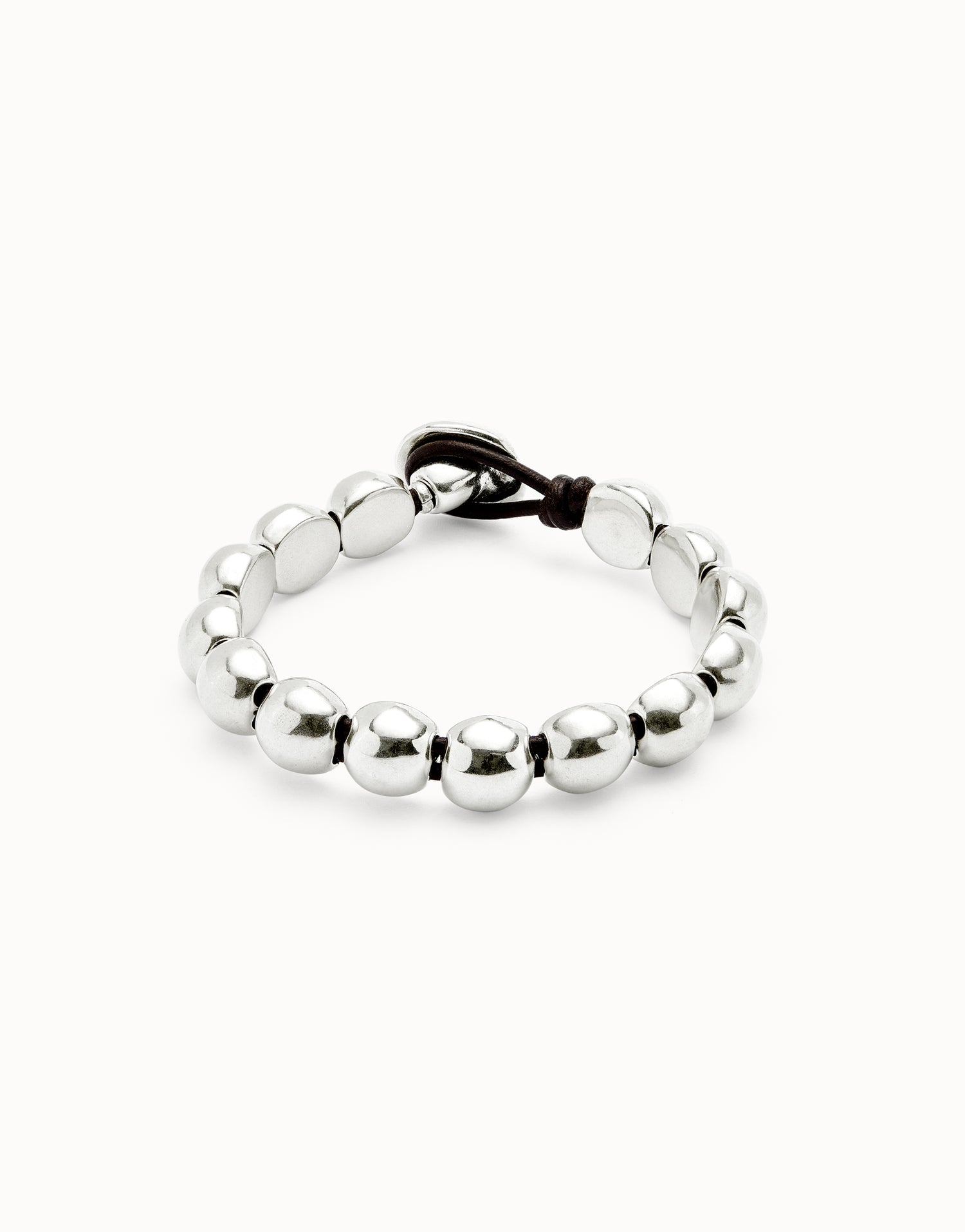 This Leather Bracelet by UNOde50 features small round sterling silver-plated beads strung along supple leather, creating a dynamic, playful, and contemporary accessory. From the Ser Intrépida collection, it embodies courage, determination, and the spirit of adventure. Each bead reflects meticulous handcrafted attention, allowing the wearer to express individuality and fearless style. Perfect for layering with other bracelets or wearing alone, it captures movement and energy while celebrating a bold, adventurous aesthetic. This bracelet transforms leather and silver into a statement of confidence, playfulness, and modern elegance.