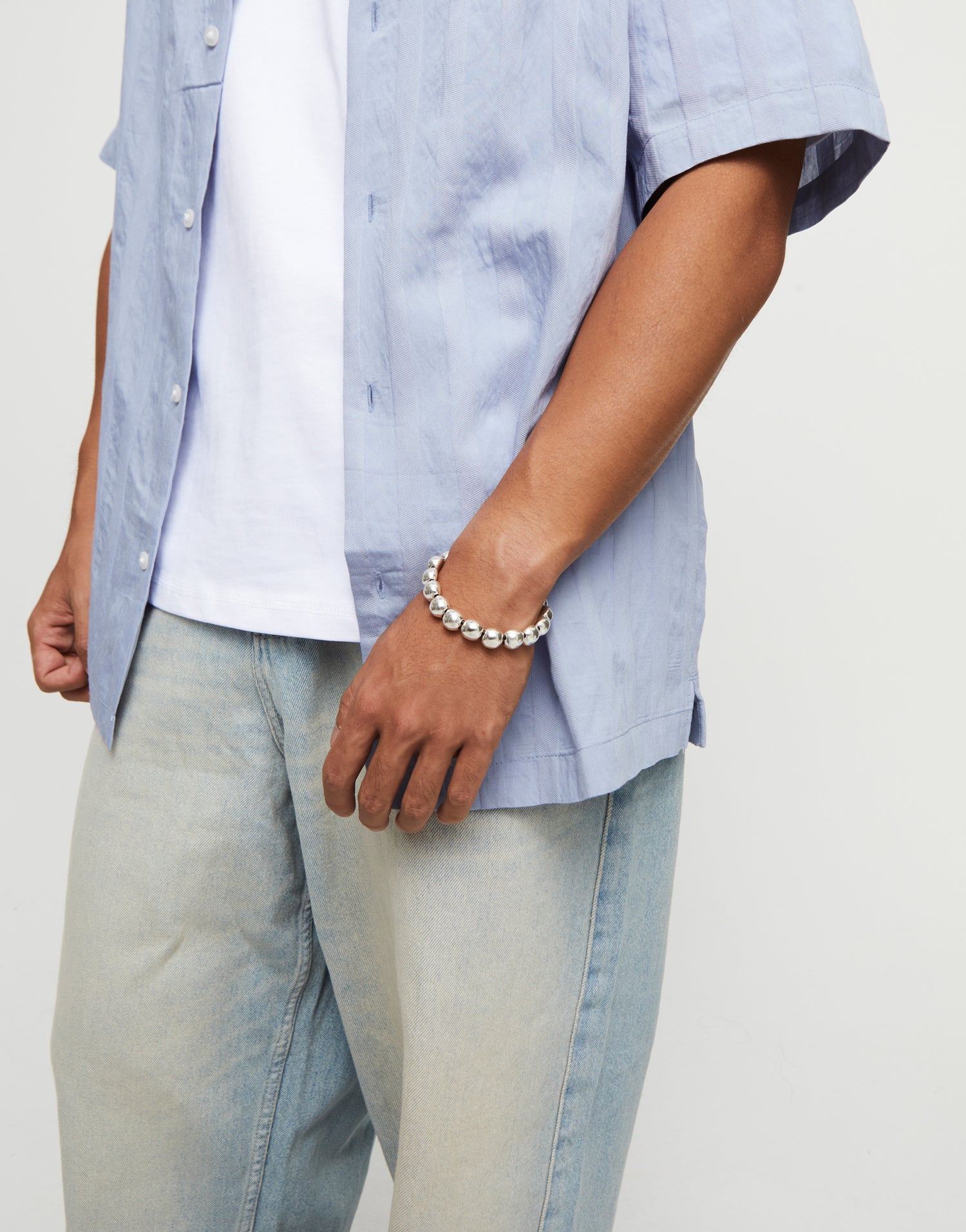 Leather bracelet with small round beads
