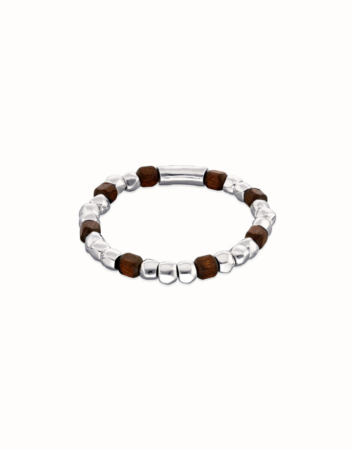 This Stretch Bracelet by UNOde50 combines silver and wooden beads on an elastic band, celebrating bold individuality and rock-inspired style. From the Ser Imparable collection, it embodies unstoppable energy, punk spirit, and fearless personal expression. Each bead is meticulously handcrafted, offering artisanal quality and unique texture. Perfect for layering or wearing alone, it captures attention with its edgy, dynamic aesthetic, transforming natural materials into a statement accessory that celebrates adventure, attitude, and contemporary rock sophistication.