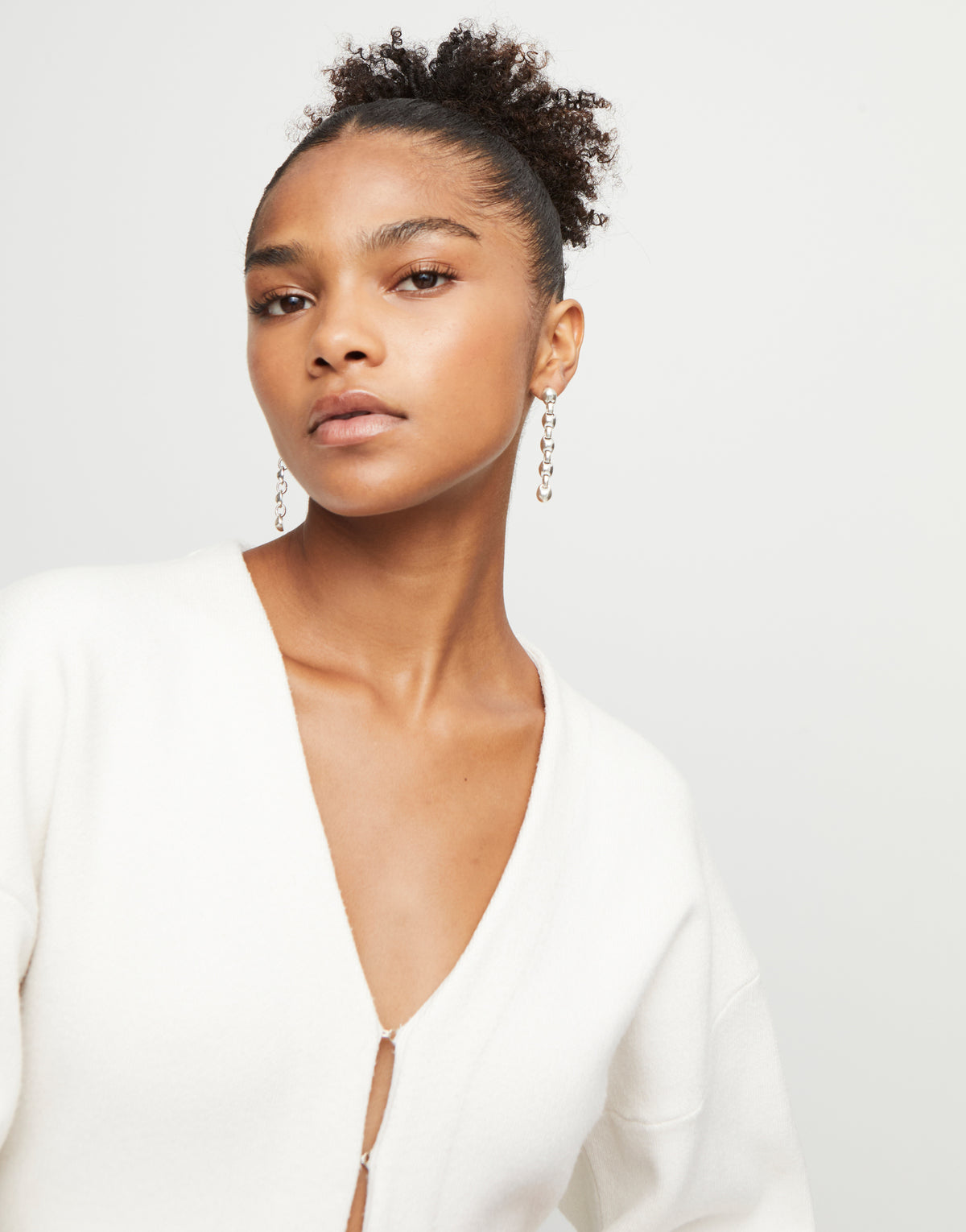 These Drop Earrings with Bead Shaped Links by UNOde50 are a striking interpretation of bold, fearless elegance from the Ser Intrépida collection. Each link cascades into a long, fluid form that captures movement and attention while maintaining refined sophistication. Handcrafted in Spain with sterling silver plating, these earrings celebrate individuality and courage, encouraging wearers to embrace audacious style choices. Their geometric bead links create rhythm and texture, perfect for pairing with both casual and elevated outfits. A dynamic design for those who live boldly and expressively, embodying the collection’s adventurous spirit.
