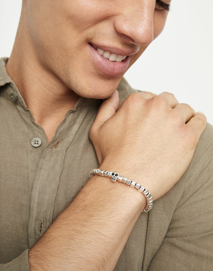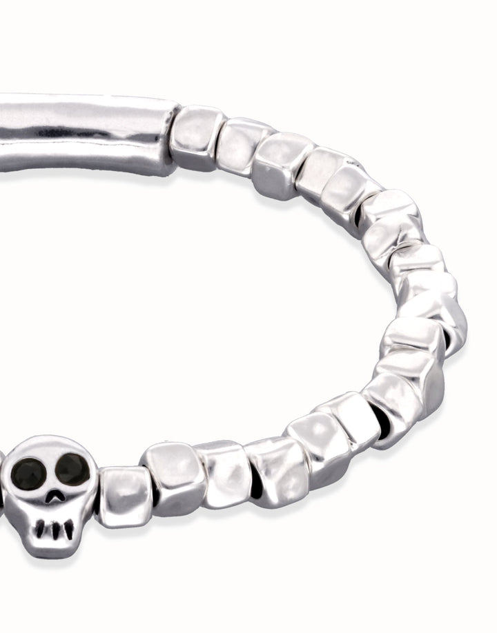 Handcrafted in sterling silver-plated metal alloy beads with skull, minimum perimeter 23.5 cm.