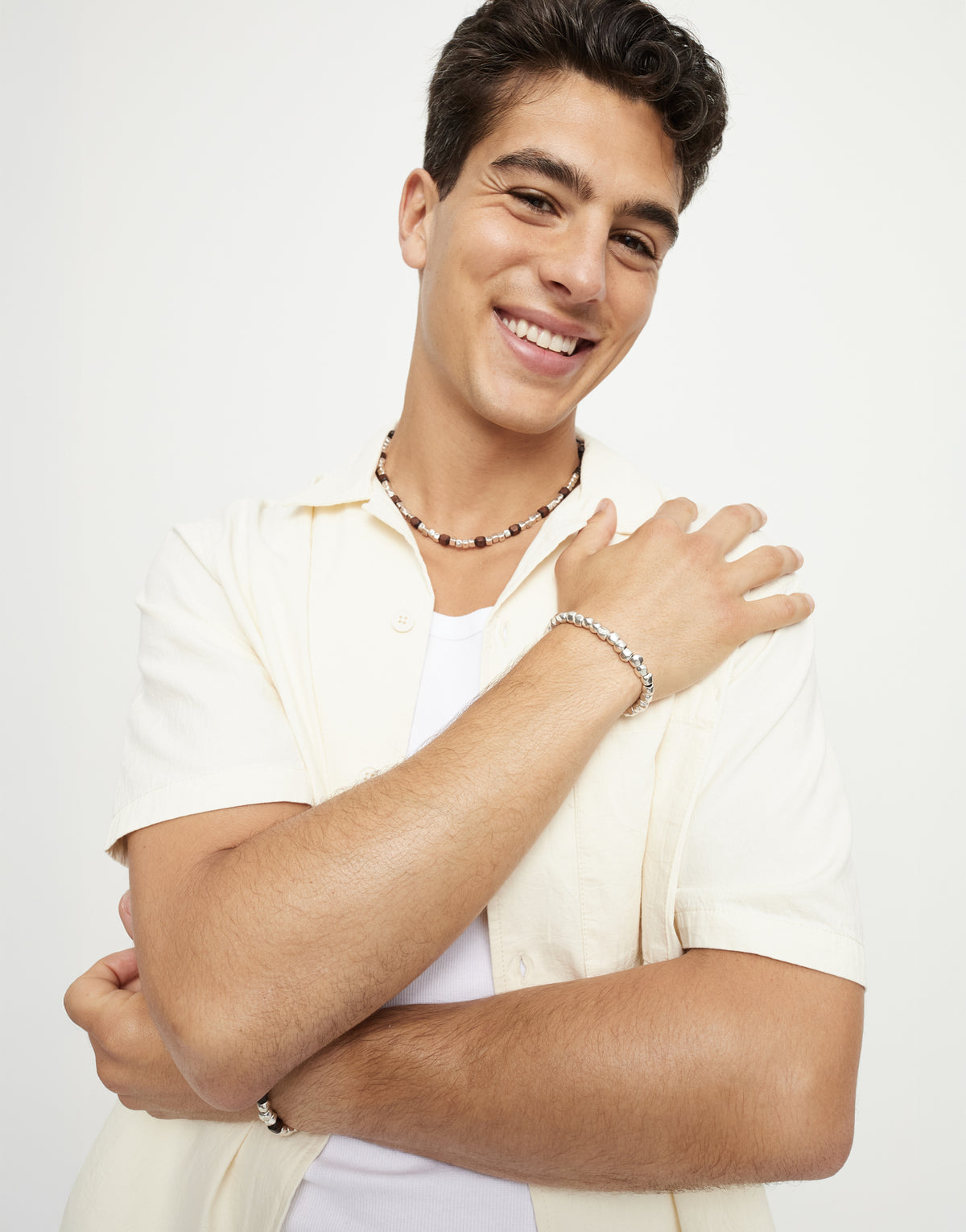 This Stretch Beaded Bracelet by UNOde50 exudes dynamic, rebellious style as part of the Ser Imparable collection. Sterling silver-plated beads on an elastic band allow flexible wear, reflecting bold, rock-inspired energy. Handmade in Spain, the bracelet’s polished finish and tactile texture encourage layering or striking solo wear. Perfect for expressing punk attitude, individuality, and unstoppable confidence, it transforms simple metal elements into a statement piece that embodies fearless artistry, music-inspired spirit, and contemporary handcrafted charm.