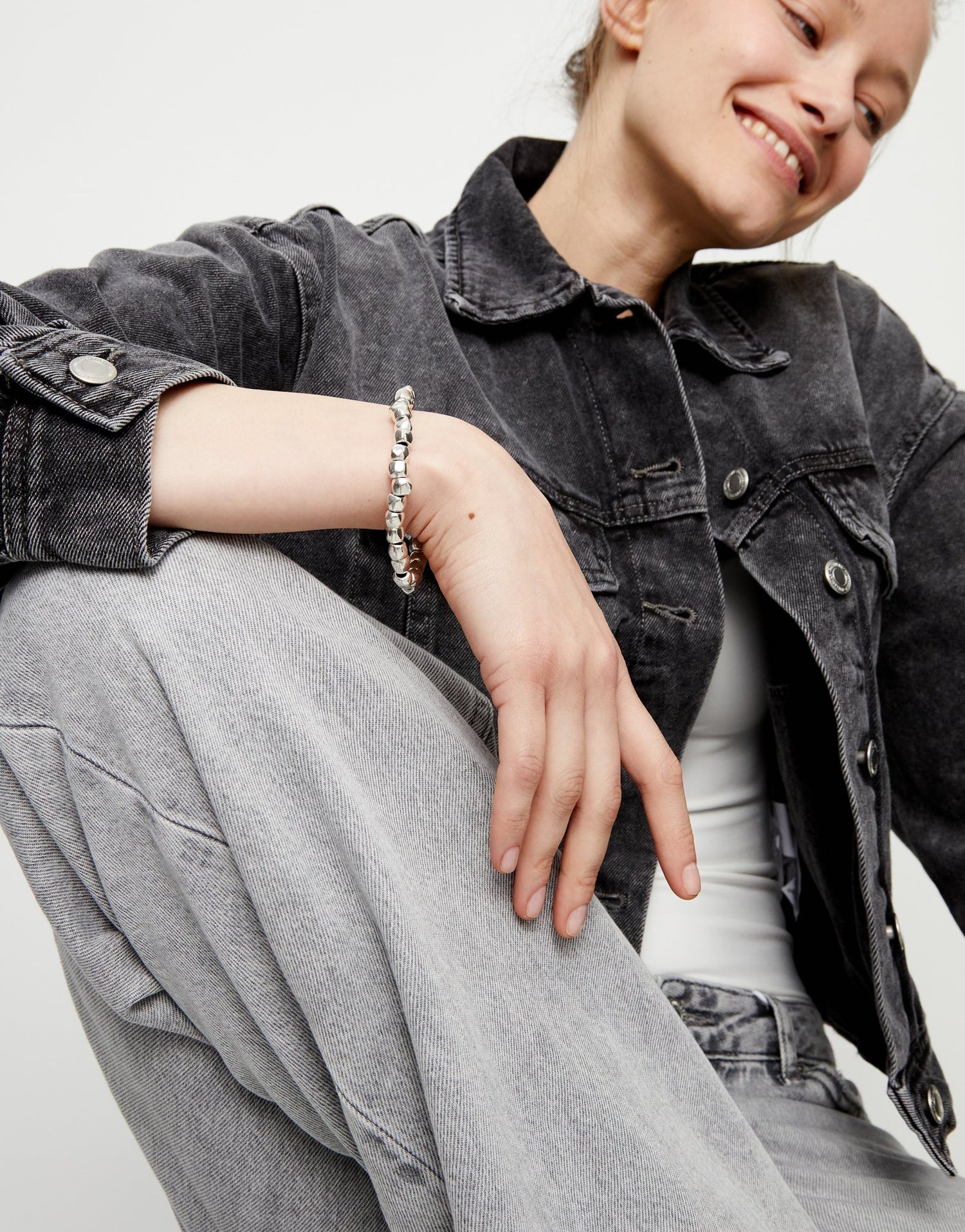 Handcrafted in sterling silver-plated metal alloy beads, minimum perimeter 18.5 cm, weight 33.5 g.