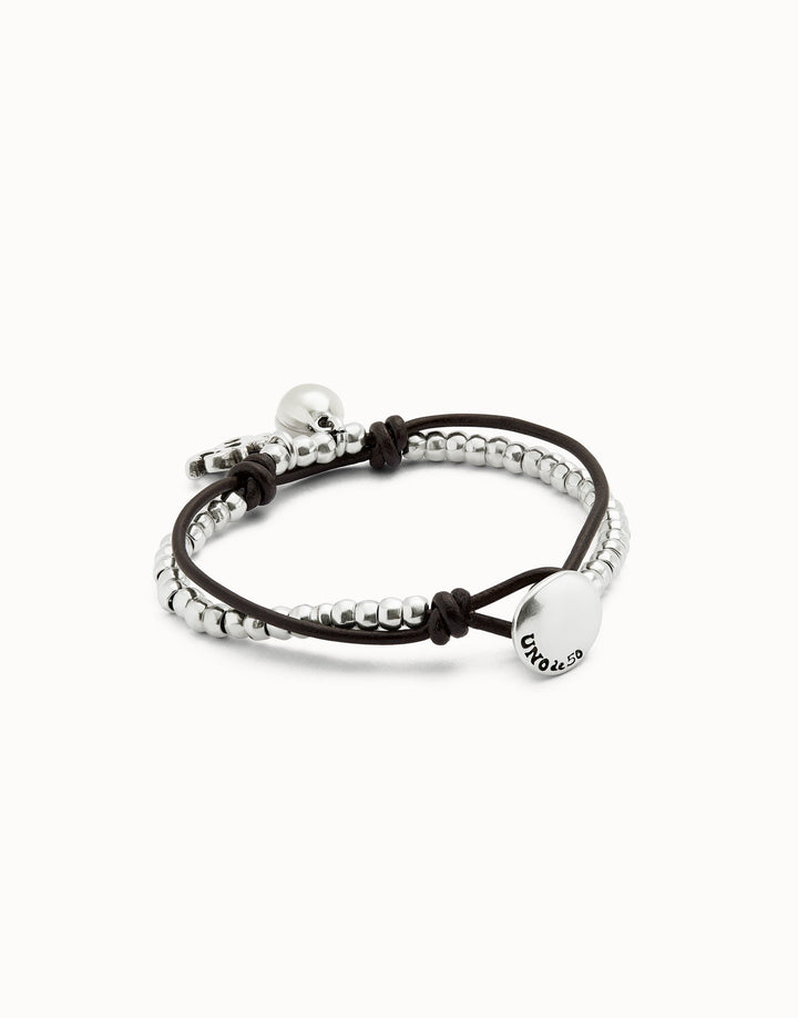 This Leather Beaded Bracelet with Ivory Murano Glass by UNOde50 exemplifies magnetic elegance from the Ser Fascinante collection. Sterling silver-plated beads with ivory Murano glass and leather combine handcrafted precision with expressive, tactile design. Handmade in Spain, the bracelet allows for versatile styling, either layered or standalone, highlighting individuality and refined craftsmanship. Its subtle hue and sculptural composition transform a simple accessory into a symbol of sophisticated artistry, magnetic presence, and contemporary elegance.