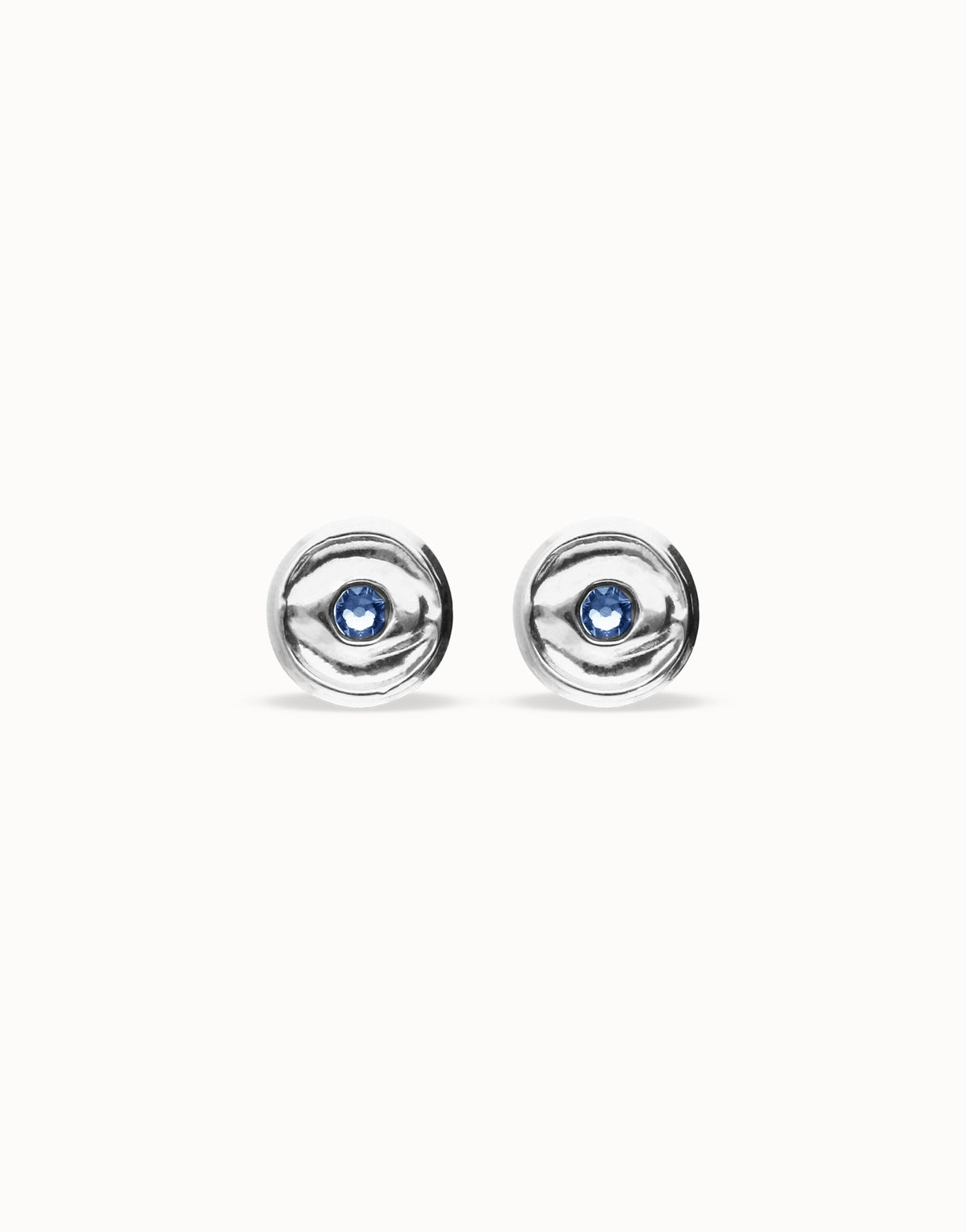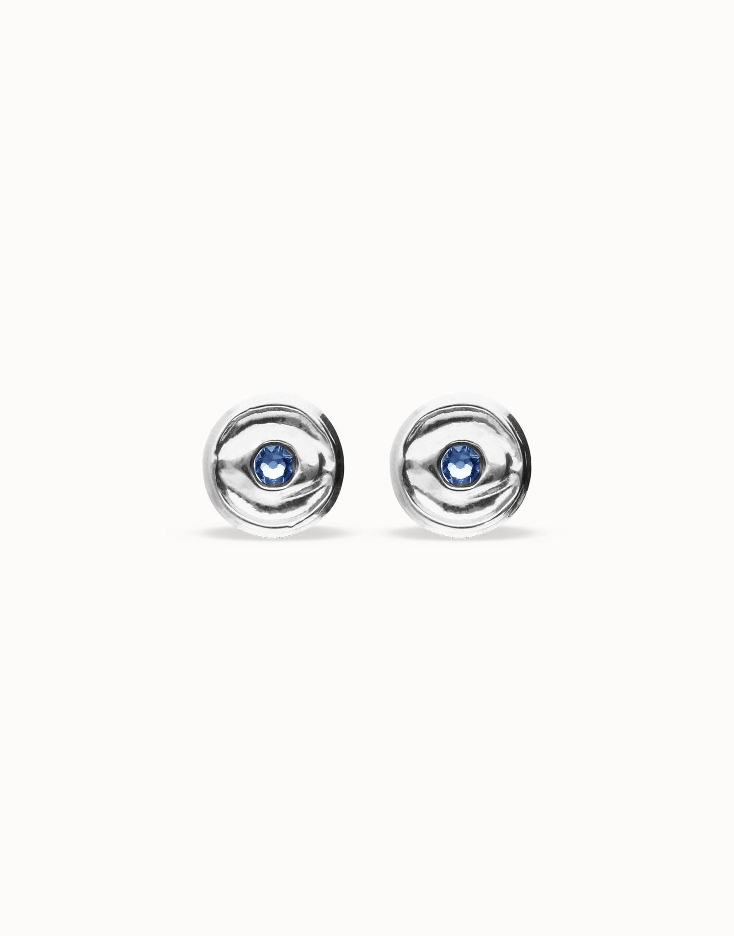 These Stud Earrings with Blue Crystal by UNOde50 evoke mystical insight and refined elegance from the Ser Intuitiva collection. Sterling silver-plated with faceted blue crystals, they capture light and reflect the wearer’s intuition and individuality. Handmade in Spain, their compact design allows for versatile styling, whether worn alone or layered. The earrings combine spiritual symbolism with contemporary craftsmanship, transforming minimalist studs into a statement of personal insight, handcrafted artistry, and subtle sophistication.