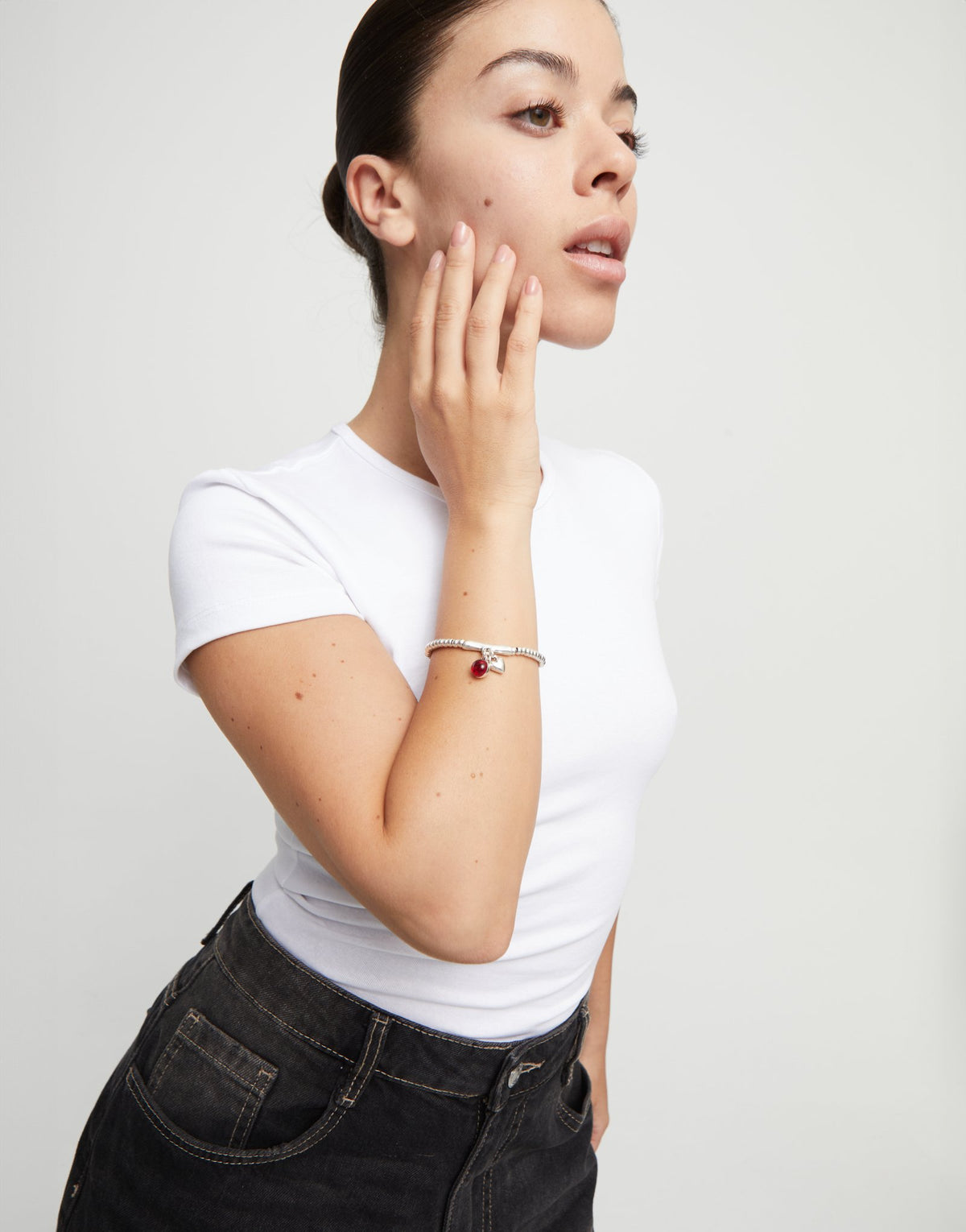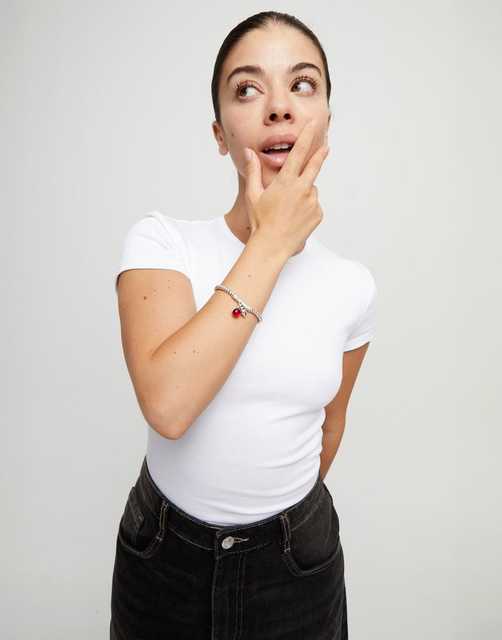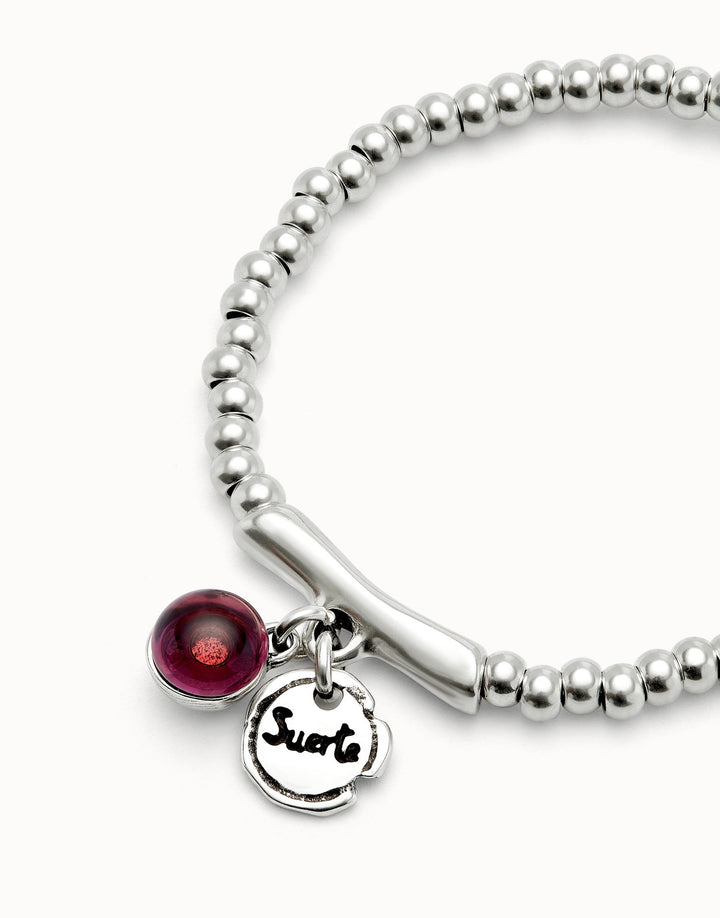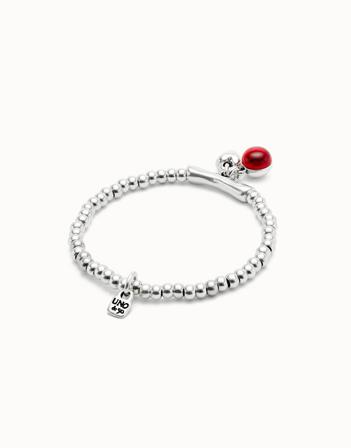 This Beaded Bracelet with Red Murano Glass by UNOde50 is a magnetic, expressive accessory from the Ser Fascinante collection. Sterling silver-plated beads and red Murano glass paired with supple leather create a vibrant, tactile piece. Handmade in Spain, it encourages solo or layered styling while showcasing individuality, artisanal craftsmanship, and bold presence. Perfect for wearers who desire unique, statement jewelry that exudes charm, elegance, and contemporary sophistication.