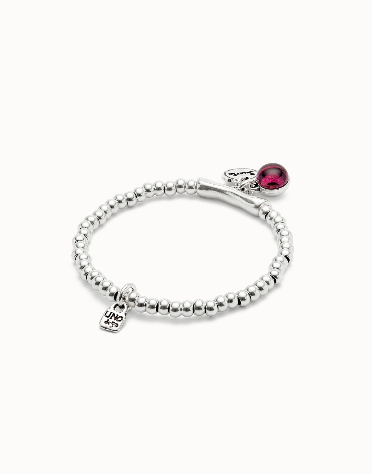 This Beaded Stretch Bracelet with Murano Glass and “Lucky” by UNOde50 is a dynamic, magnetic accessory from the Ser Fascinante collection. Sterling silver-plated beads and Murano glass “Lucky” detail are handcrafted in Spain, highlighting artisanal craftsmanship and expressive design. The elastic band ensures versatile wear, perfect for layering or solo styling. Its tactile texture and vibrant charm transform a simple bracelet into a statement of individuality, playful elegance, and contemporary handcrafted artistry.