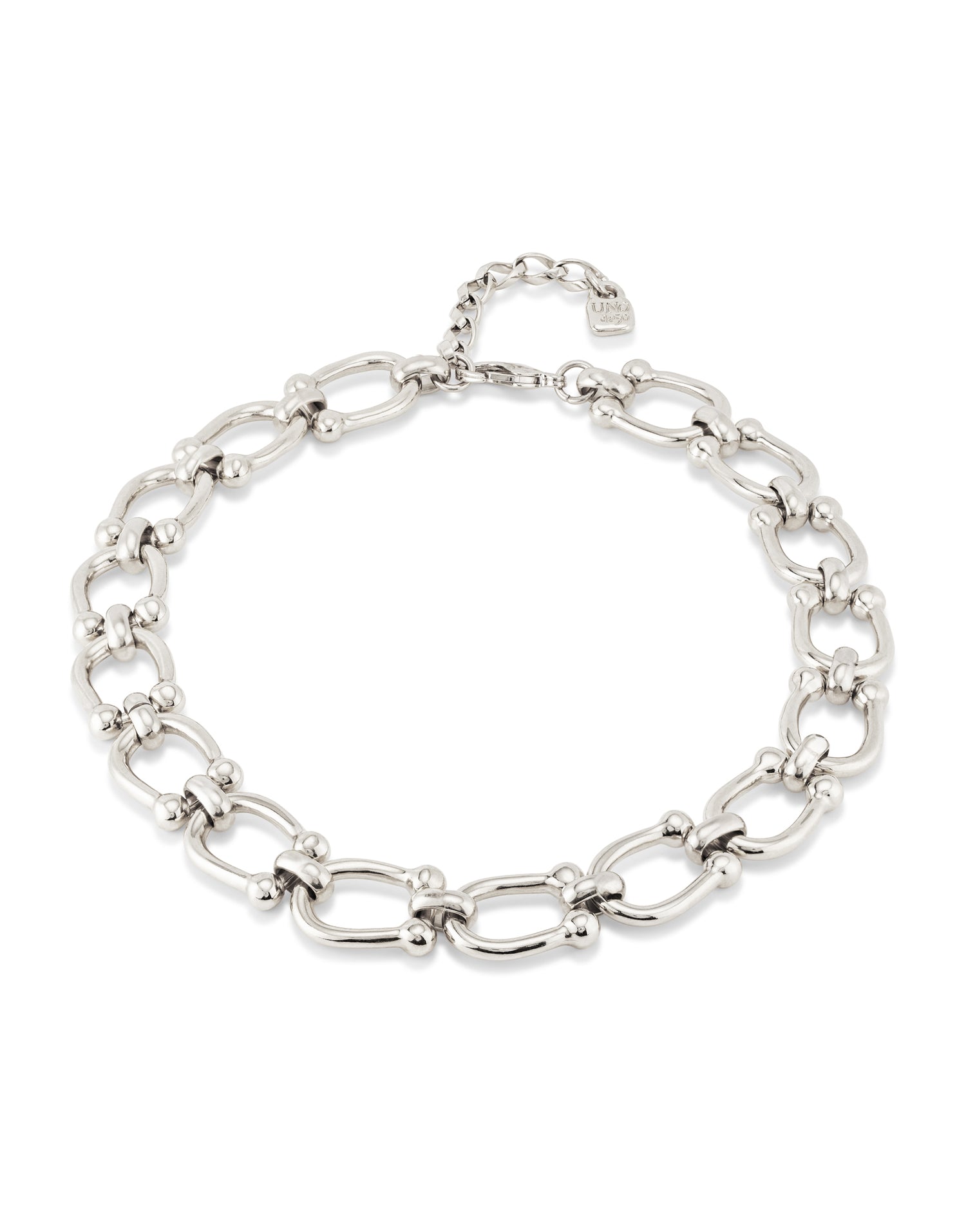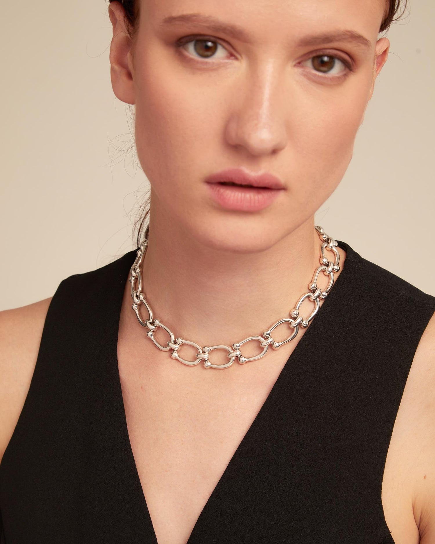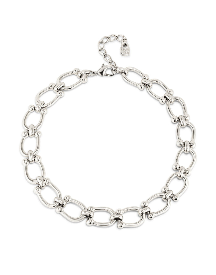 This Short link chain necklace by UNOde50 features mid-sized sterling silver-plated links, celebrating youthful energy and freedom. Handmade in Spain, it embodies the Youthful collection’s philosophy of experimentation, exploration, and self-expression. The varying link sizes create visual interest and versatility, allowing for layered or solo styling. Its artisanal craftsmanship reflects attention to detail and modern elegance, making it a statement accessory for contemporary, carefree spirits who embrace individuality and creative personal style.
