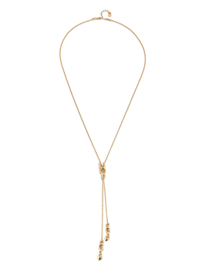 Handcrafted in 18k gold-plated metal, adjustable length 100–105 cm.