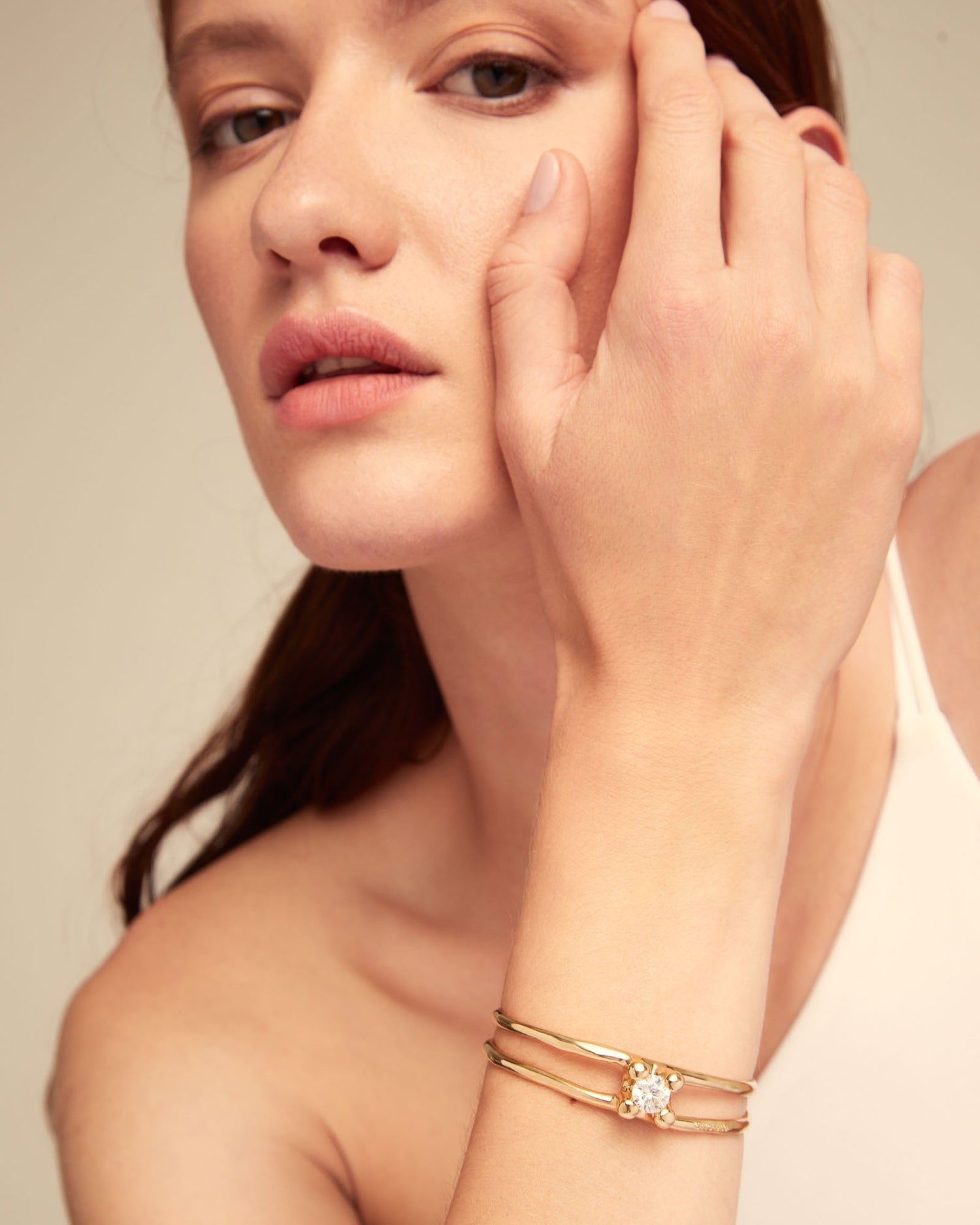 Handcrafted in 18k gold-plated metal with circonite crystal, adjustable perimeter 16–17 cm.