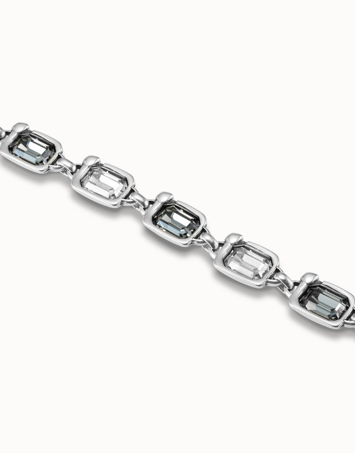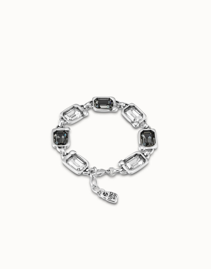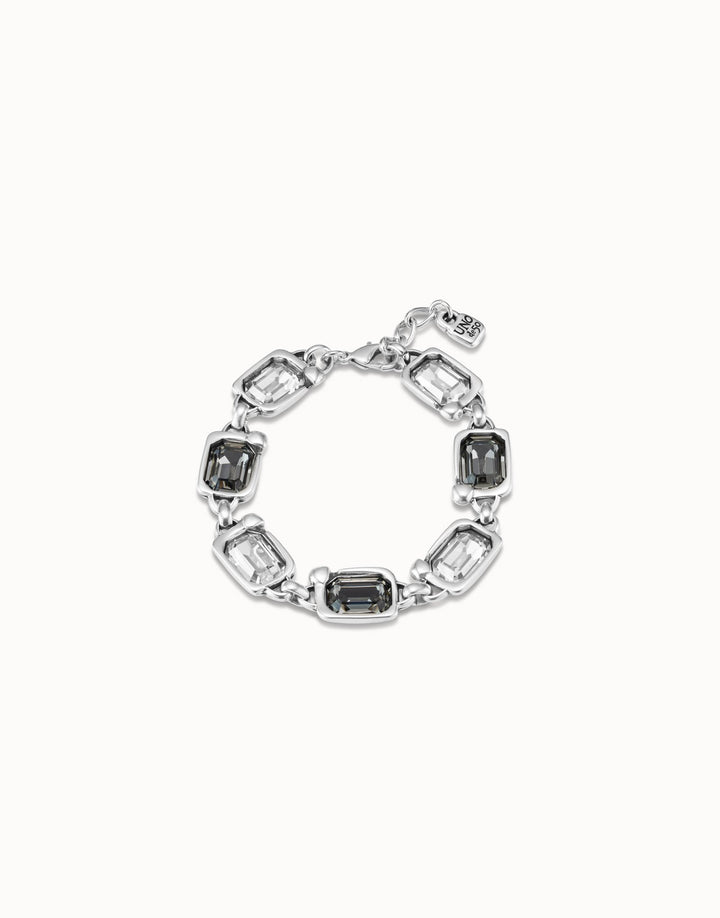 This Bracelet UNEXPECTED by UNOde50 features rectangular boxes inspired by nail shapes interspersed with faceted blue-gray and silver-gray crystals. Handmade in Spain, it embodies the Curious collection’s theme of surprise, exploration, and fascination with light. The adjustable carabiner clasp ensures versatile fit, while the bold, geometric design emphasizes modern artistry and individuality. A striking statement piece, it celebrates fearless creativity, uniqueness, and expressive craftsmanship, perfect for contemporary jewelry enthusiasts who enjoy playful, meaningful, and dynamic accessories.