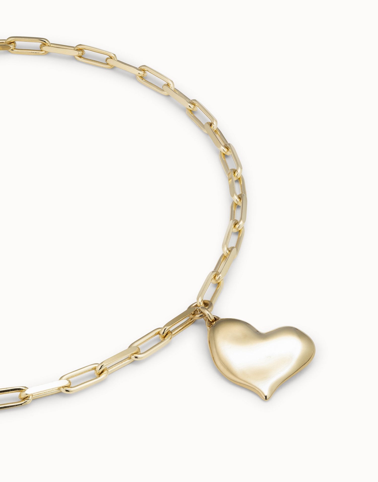 This Link chain necklace with heart by UNOde50 features mid-sized gold-plated links and the brand’s iconic heart charm, handmade in Spain. Its carabiner clasp allows adjustable fit, combining timeless elegance with modern, expressive design. The piece embodies the Loved collection’s themes of love, personal connection, and meaningful symbolism. Perfect for layering or solo wear, it highlights artisanal craftsmanship and contemporary style, making it a versatile statement necklace that communicates individuality, sophistication, and bold romantic expression.