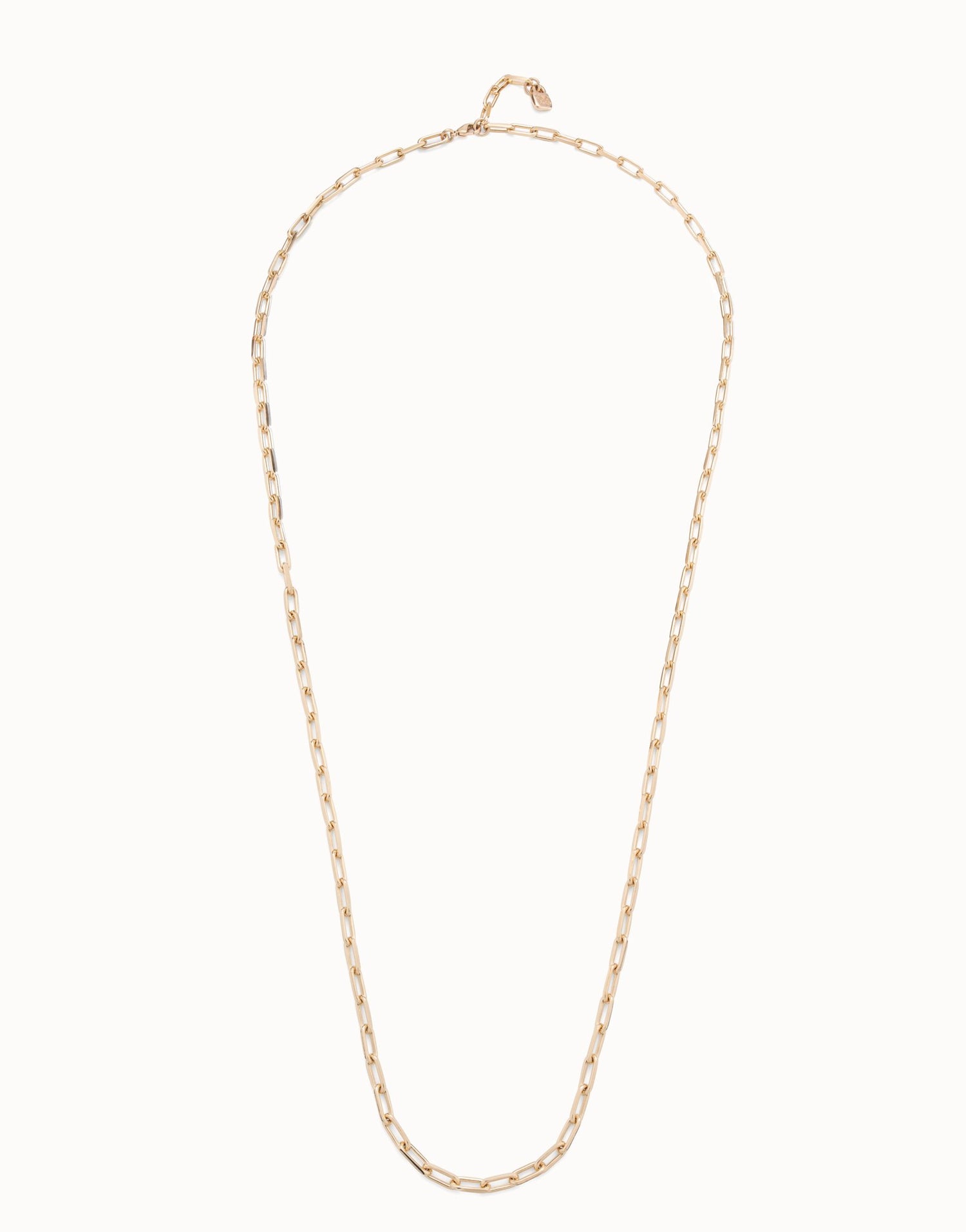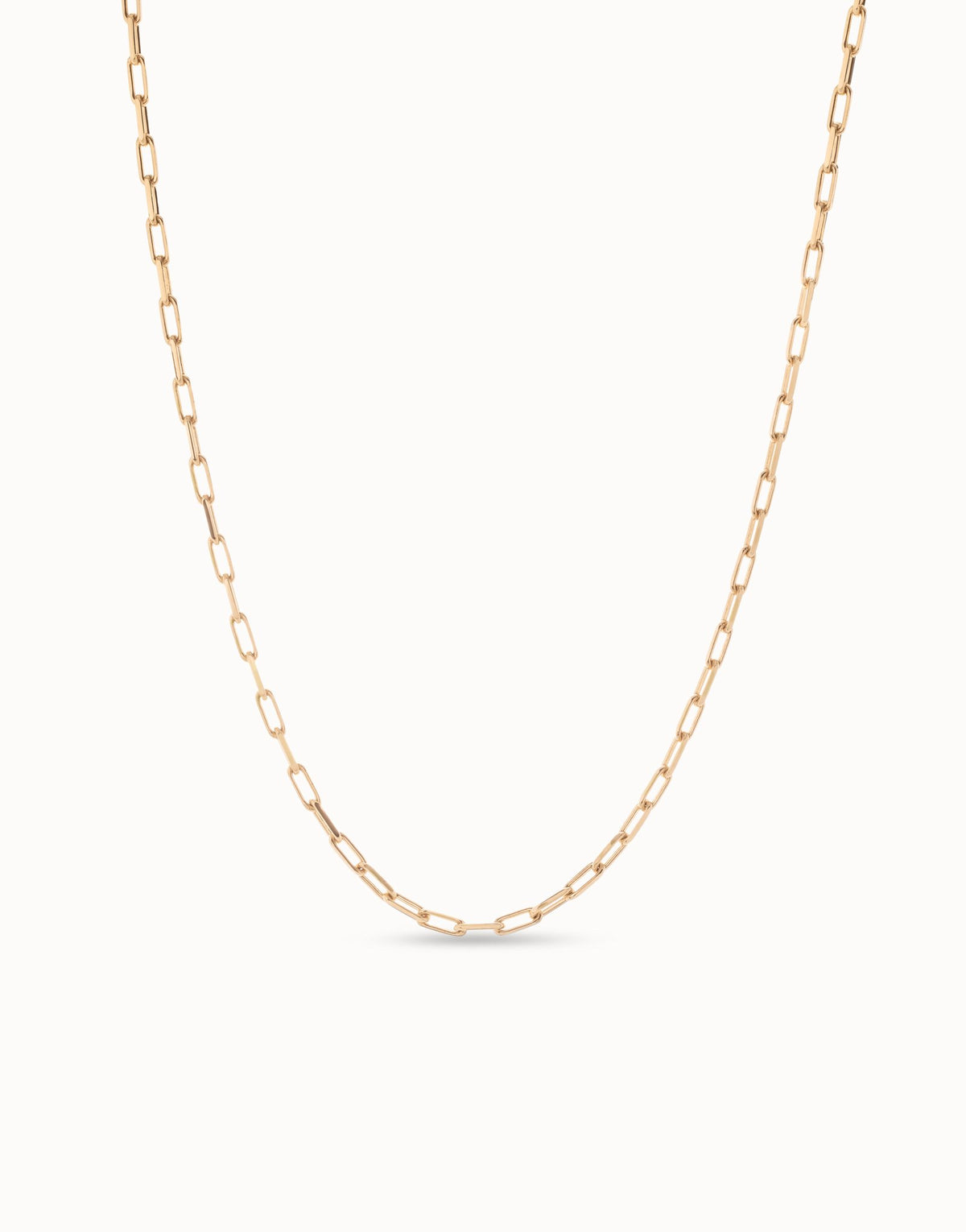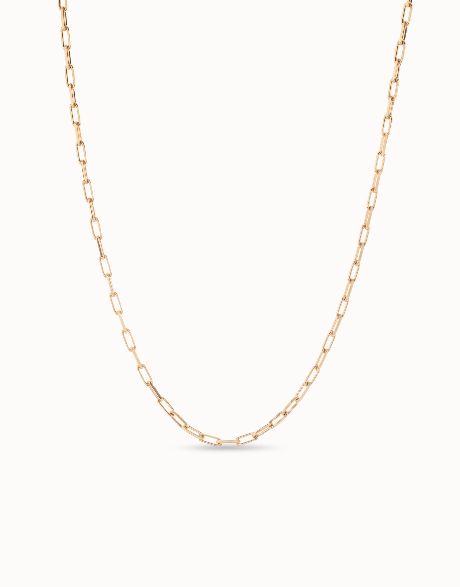 18k gold-plated metal, elongated links, maximum length 93 cm, minimum length 89 cm, handcrafted in Spain.