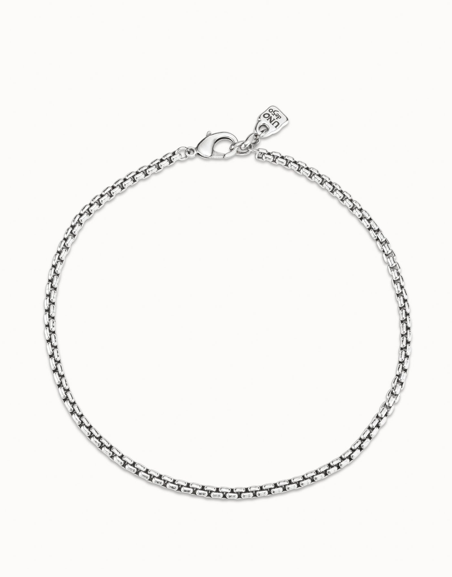 Sterling silver-plated metal, link chain with padlock charm, maximum length 54.5 cm, minimum length 52.5 cm, handcrafted in Spain.