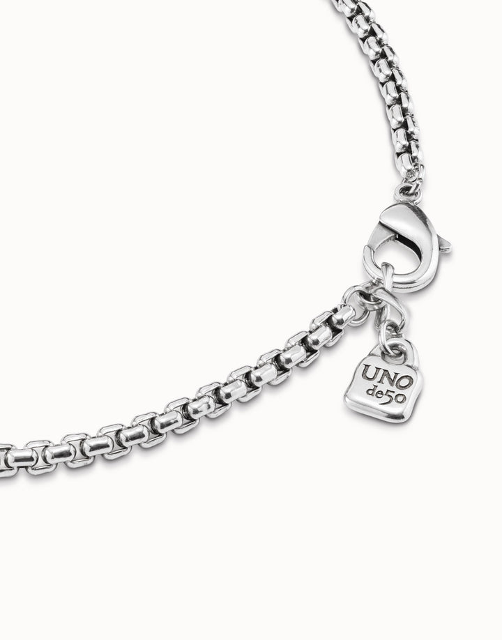 This Link Chain Necklace by UNOde50 is a versatile statement of contemporary elegance and artisanal precision. Its sterling silver-plated links form a fluid chain from which the brand’s iconic padlock elegantly hangs, symbolizing security and connection. Perfect for daily wear or layering with other necklaces, the piece reflects UNOde50’s commitment to handcrafted Spanish jewelry. The design conveys strength, charm, and refined minimalism while celebrating individuality. A harmonious blend of functionality and artistry, this necklace embodies timeless sophistication, offering a signature accessory that resonates with personal style and the subtle power of detailed craftsmanship.